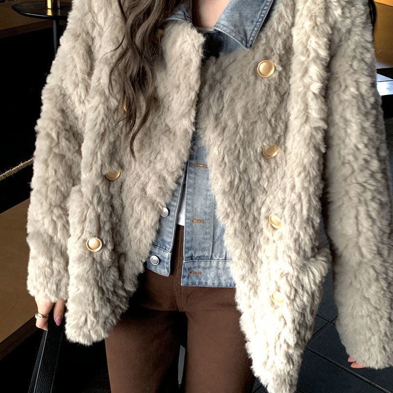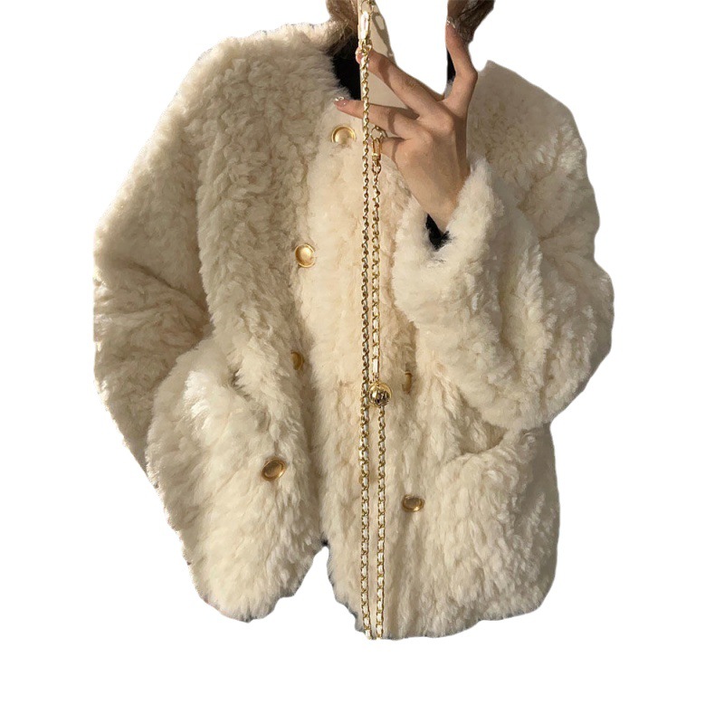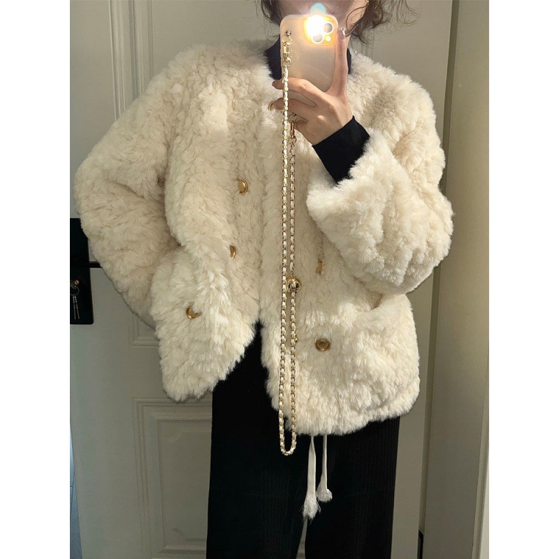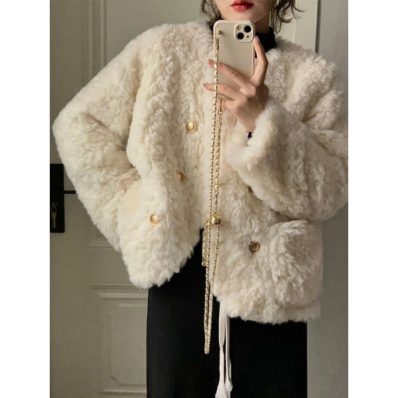 | nameOriginal | Chanel style lamb wool coat for women 2023 Winter new small loose thick white wool coat cotton-padded coat |