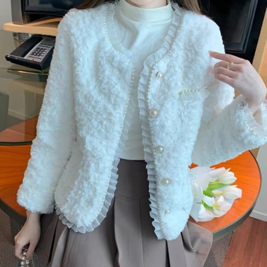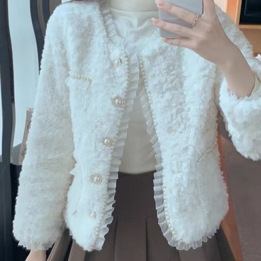 | nameOriginal | Chanel style lamb wool coat for women autumn and winter New Korean style high texture lace beaded faux fur coat top |