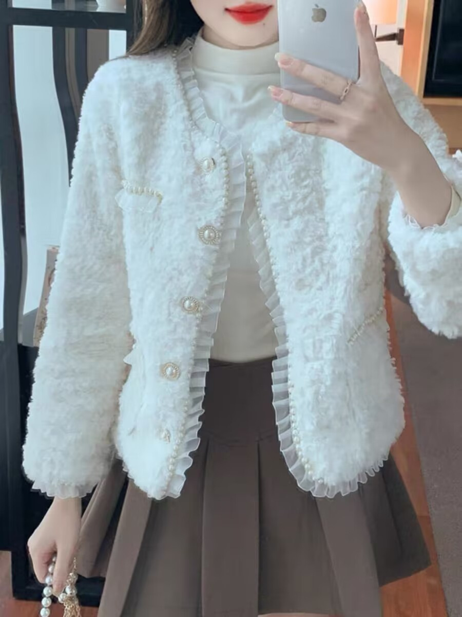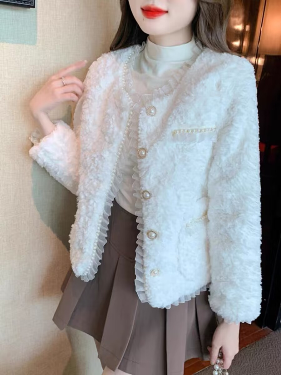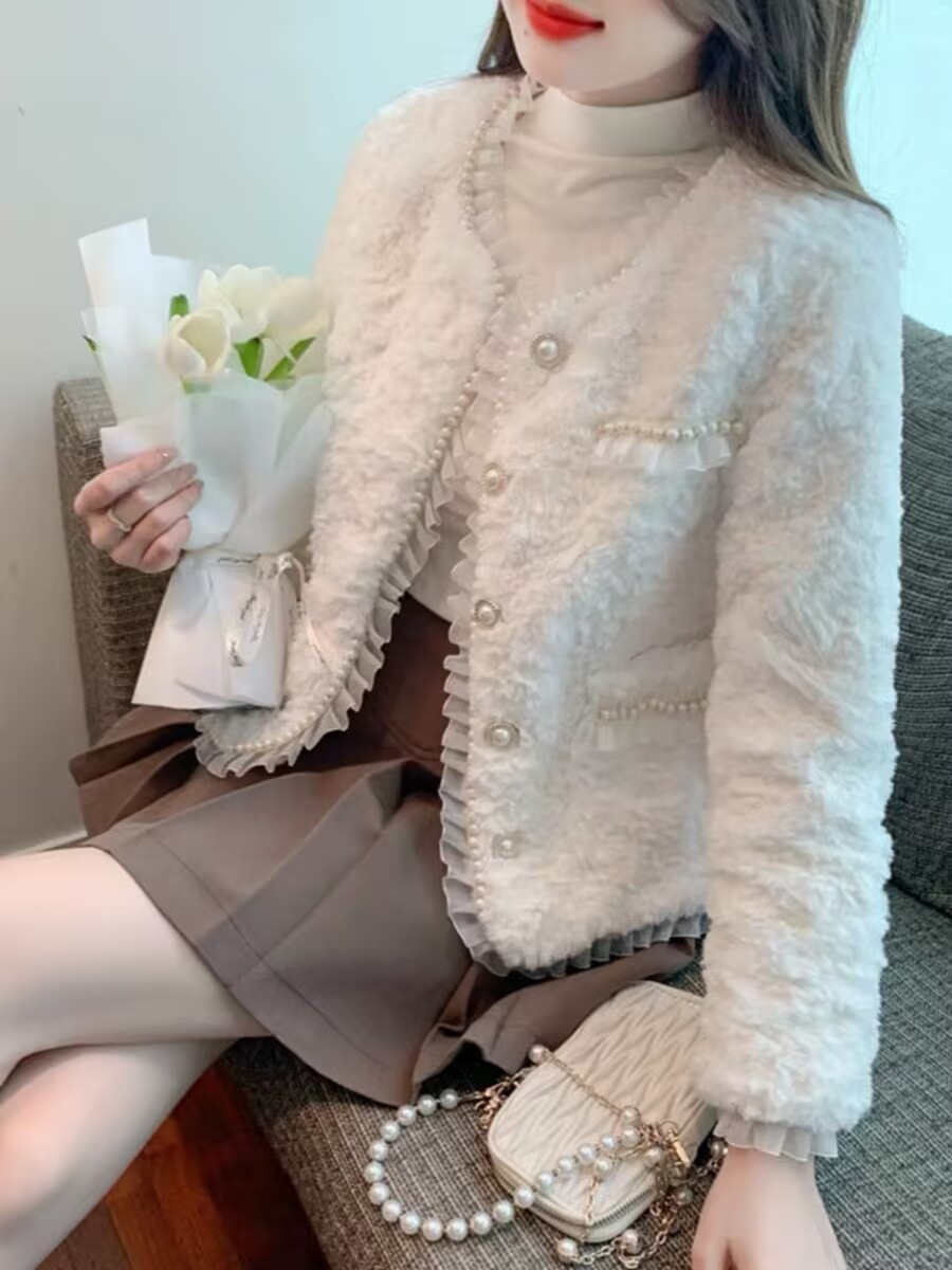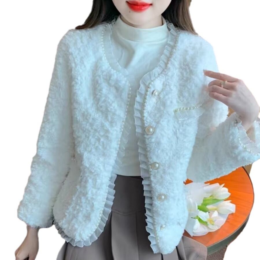 | nameOriginal | Chanel style lamb wool coat for women autumn and winter New Korean style high texture lace beaded faux fur coat top |