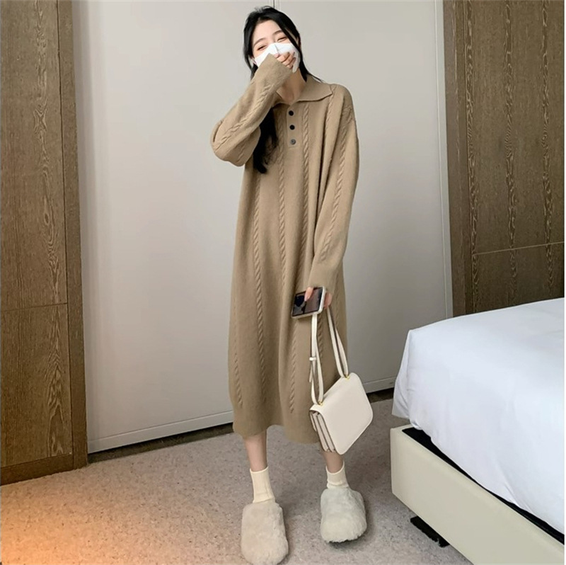 | nameOriginal | Chanel Style Mid-length Pullover Knitted Top Women's Autumn and Winter New Loose Elegant Lapel French Sweater Dress |