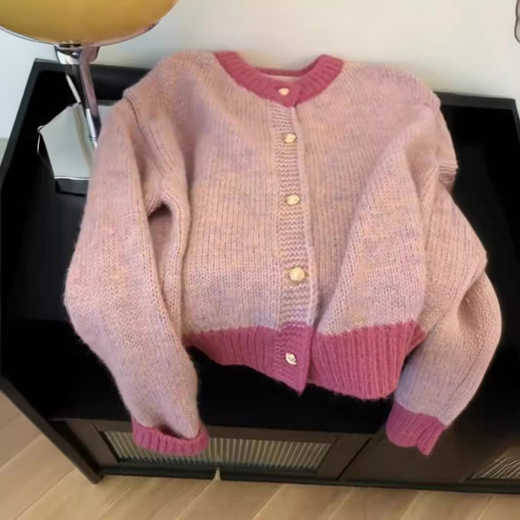| nameOriginal | Chanel Style Pink Short Sweater Coat Women's Spring New Lazy Style Small Knitted Cardigan Top |