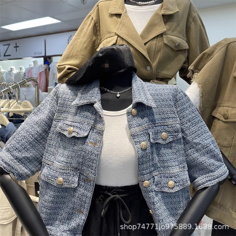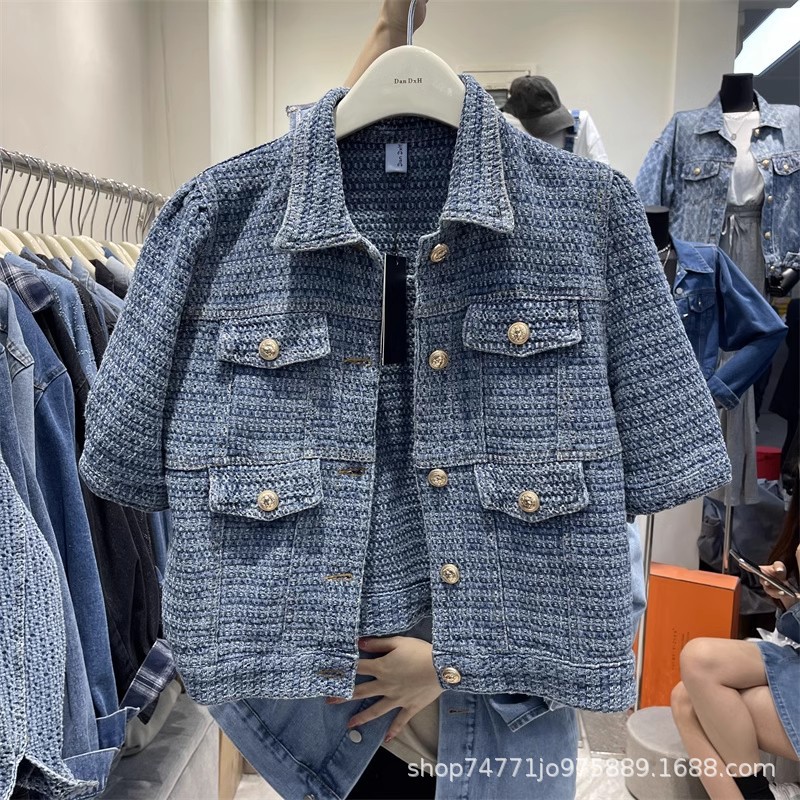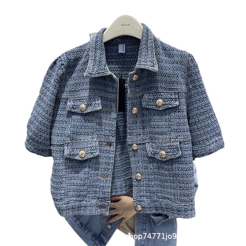 | nameOriginal | Chanel style short sleeve Denim coat women's spring and summer vintage woven crocheted small high waist short jacket top |
