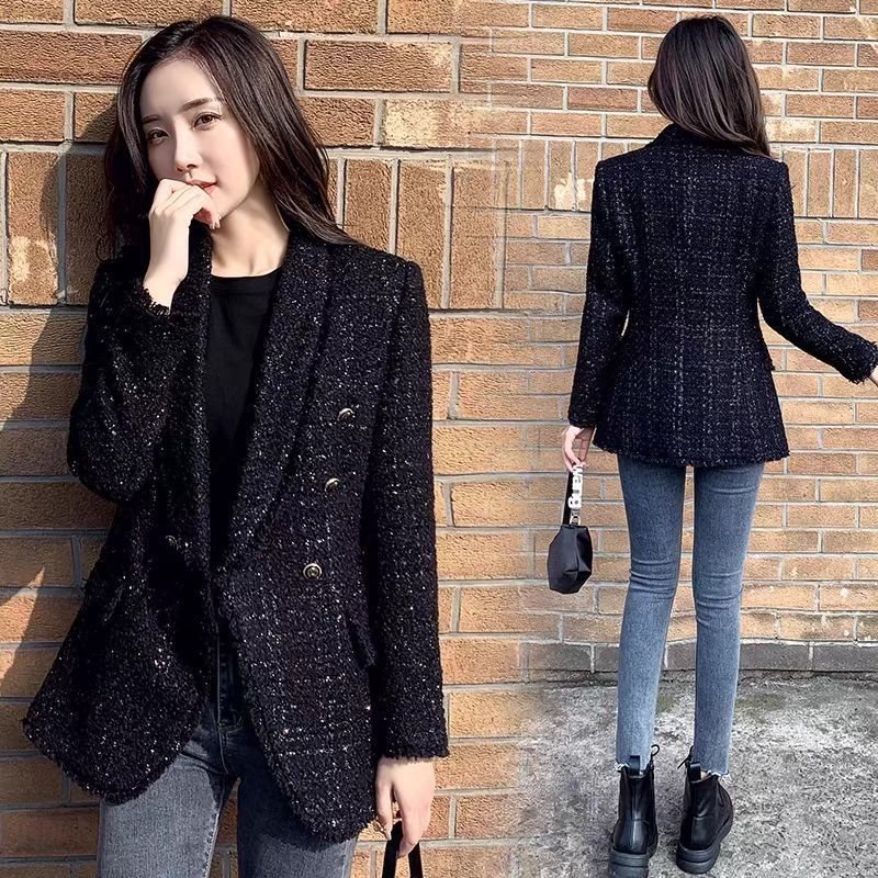 Chanel Style Suit Jacket Women's Spring and Autumn 2023 New British Style Black Tight Waisted Slim-fit High-end Woolen Suit