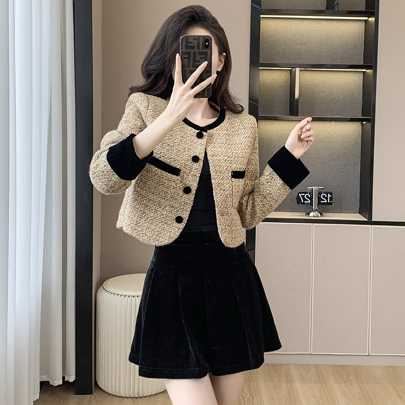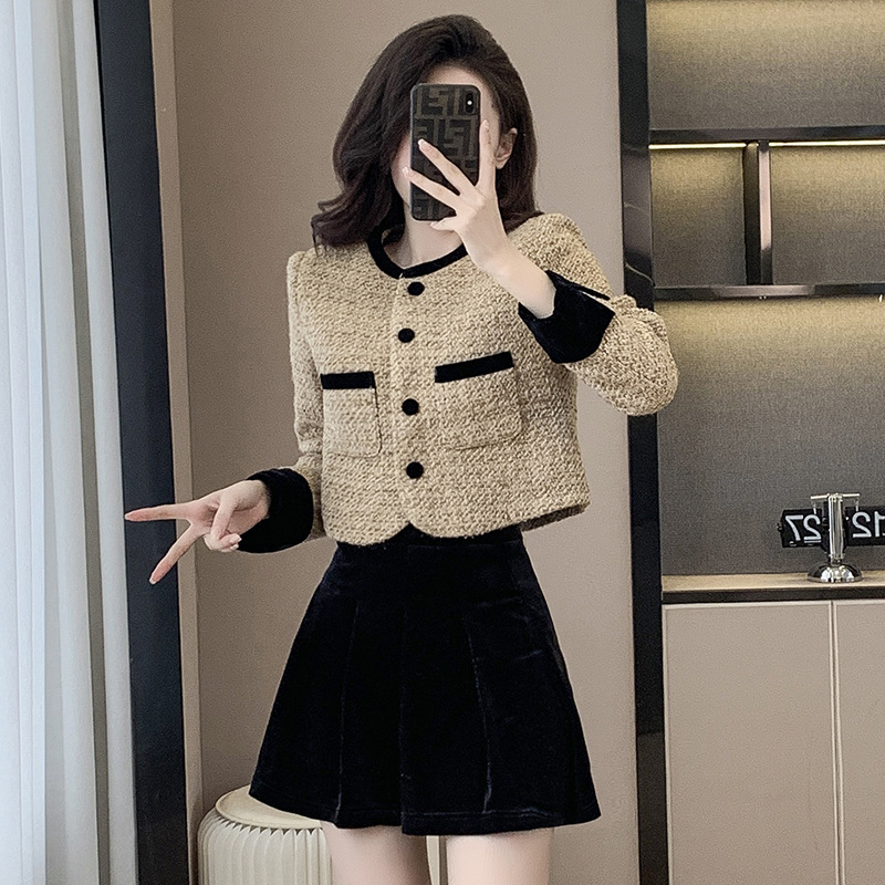 | nameOriginal | Chanel style suit skirt 2024 Winter new thickened socialite gold velvet short skirt two-piece set |