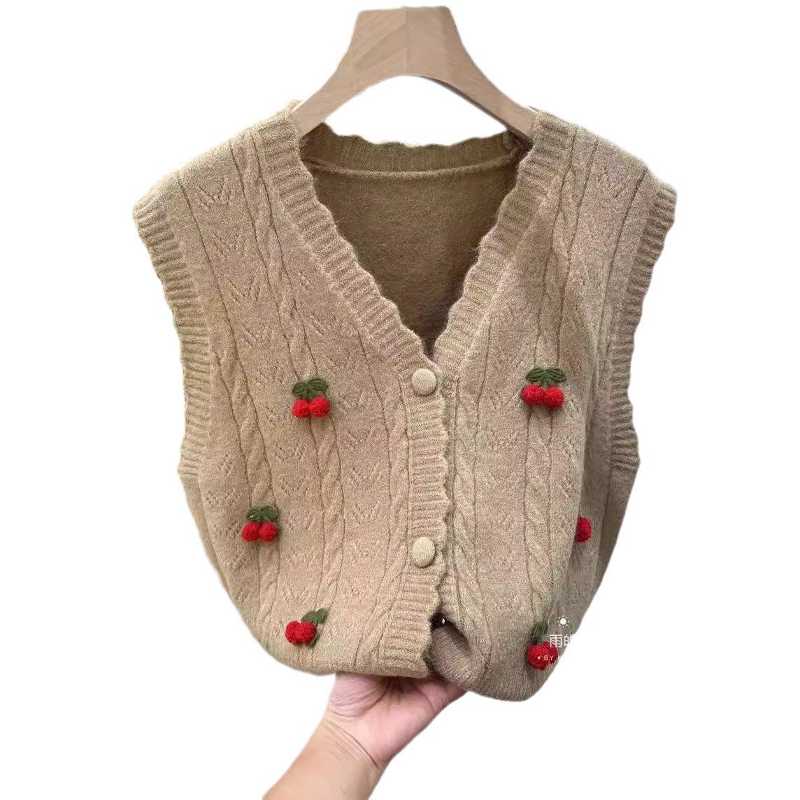 | nameOriginal | Chanel Style Three-dimensional Cherry Knitted Vest Cardigan Women's Autumn and Winter New Loose Stacked Sweater Vest Top |