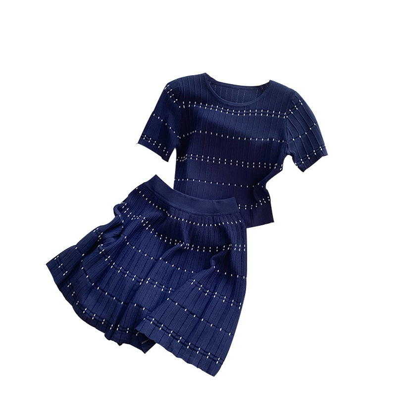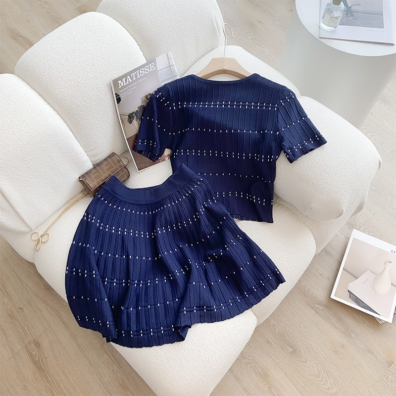 | nameOriginal | Chanel Style Two-Piece Women's Clothing Summer Striped Short Top Knitted Sweater Tight Waist Skirt A- Line Skirt suit |