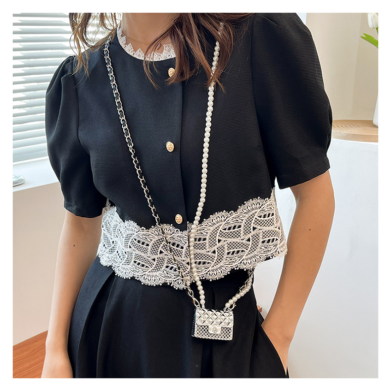 Chanel Style Waist Bag Women's Metal Hollow mini Earphone Bag Pearl Chain Rhombic Crossbody Bag Hanging Neck Decorative Small Bag