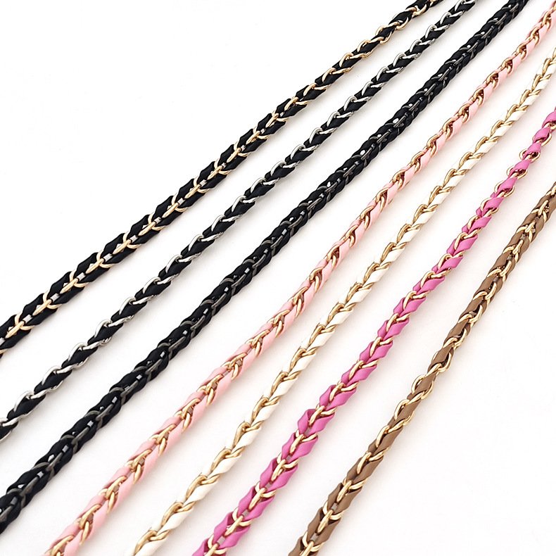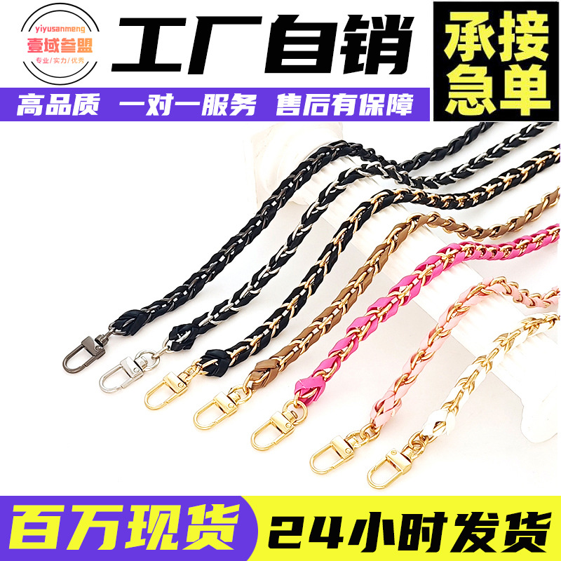 Chanel style women's bag shoulder messenger bag chain metal chain shoulder strap leather bag chain leather woven bag belt