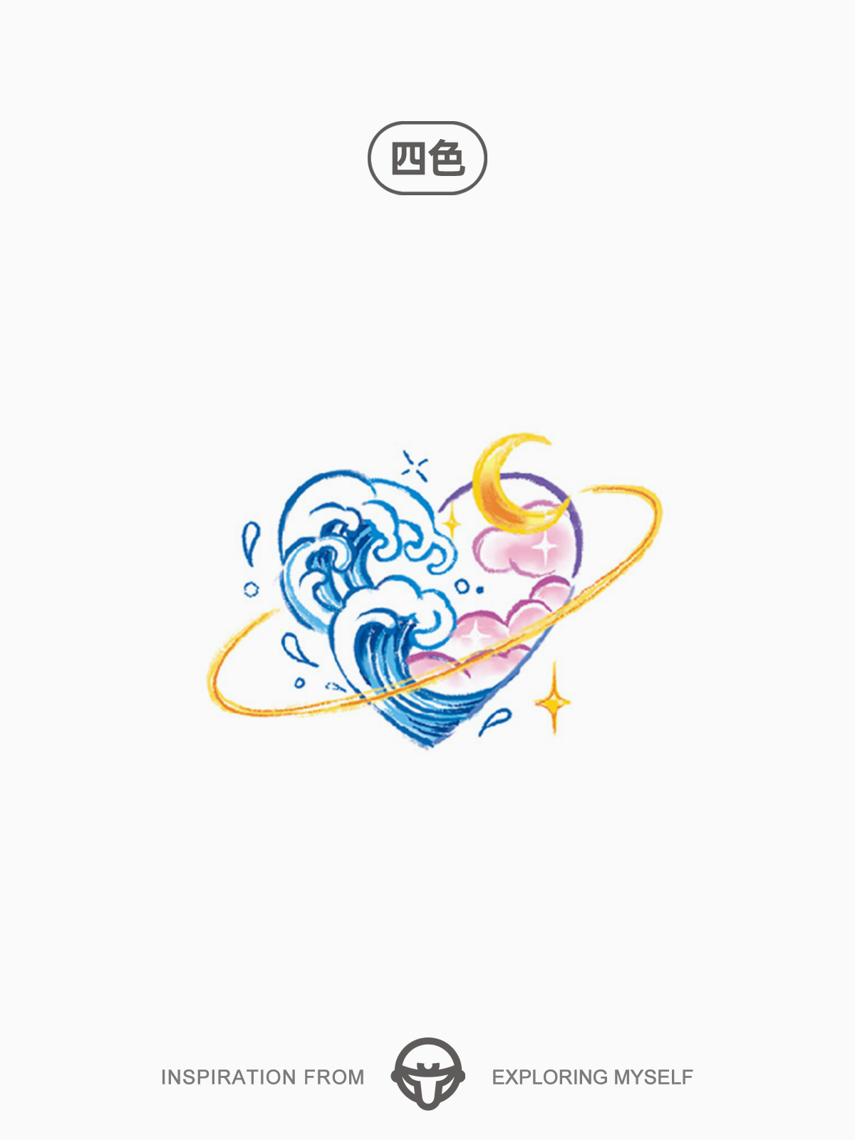 Change again Heart Sea Color Waterproof Female Wave Tattoo Sticker Love Heart Shaped Collarbone Arm Advanced Dopamine