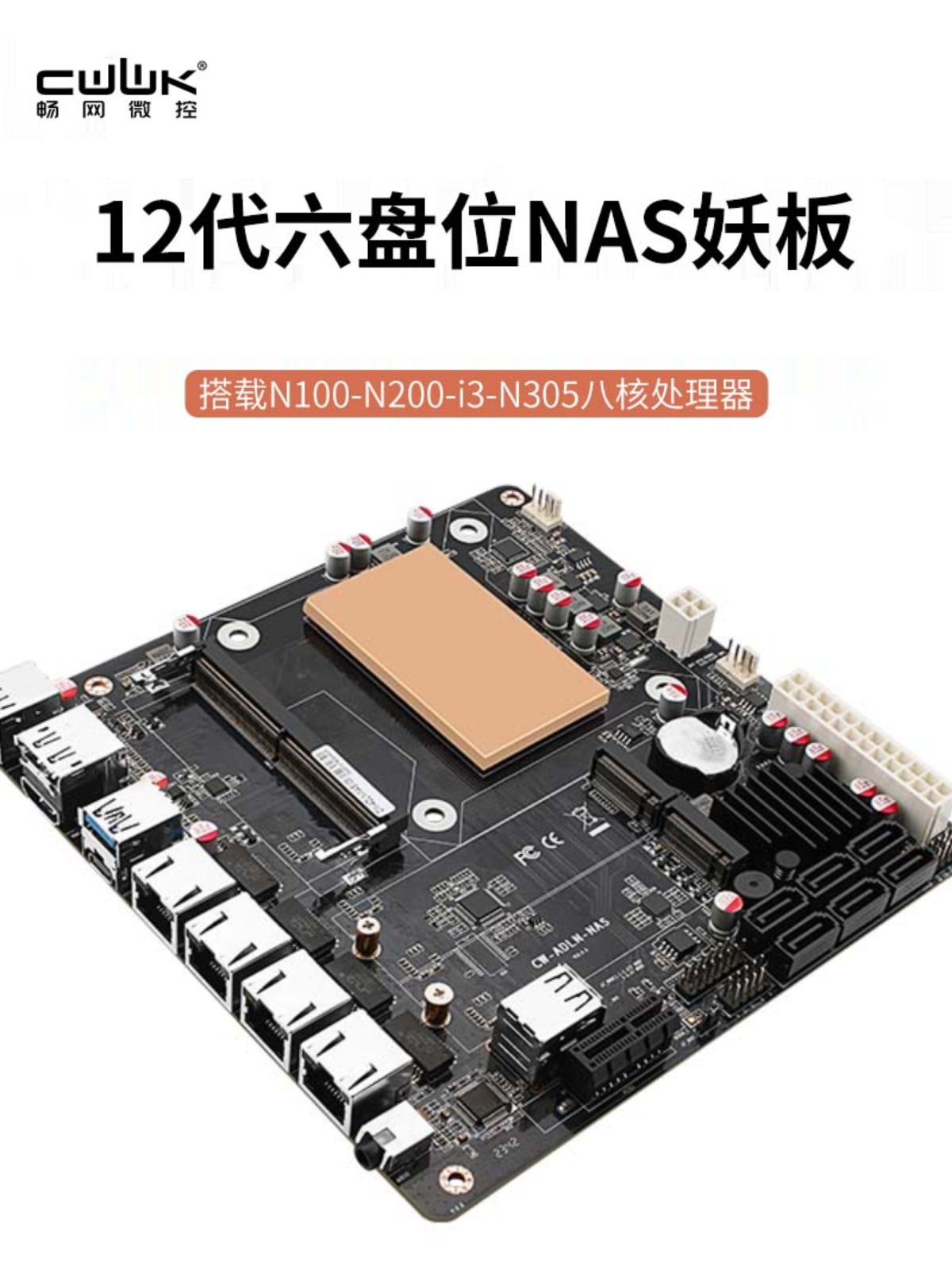 | nameOriginal | Changwang Microcontroller N100/i3-N305 six-bay NAS motherboard 4 networks 2.5G 6 SATA low power consumption |