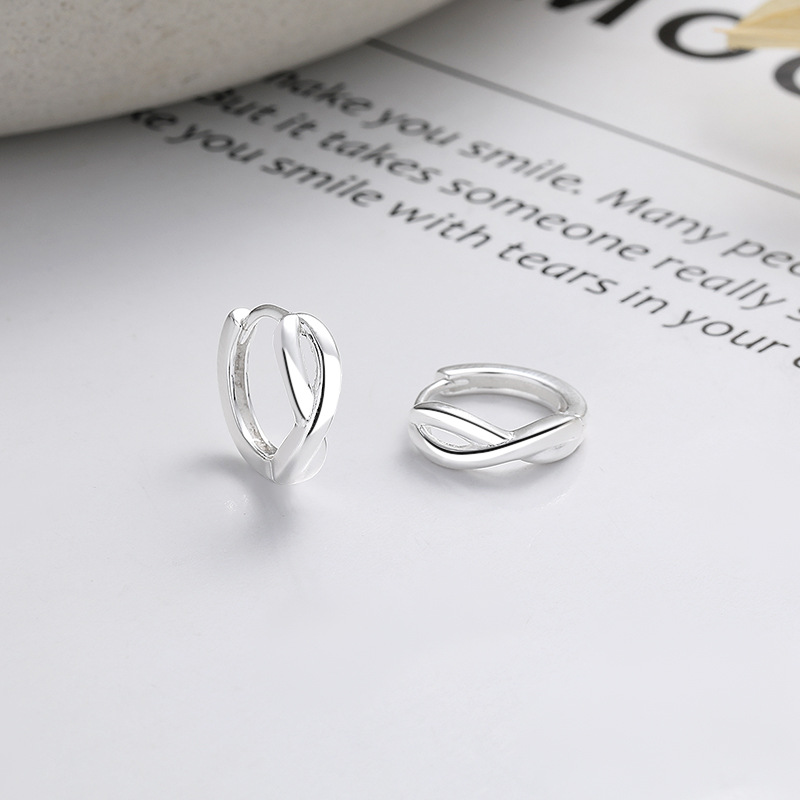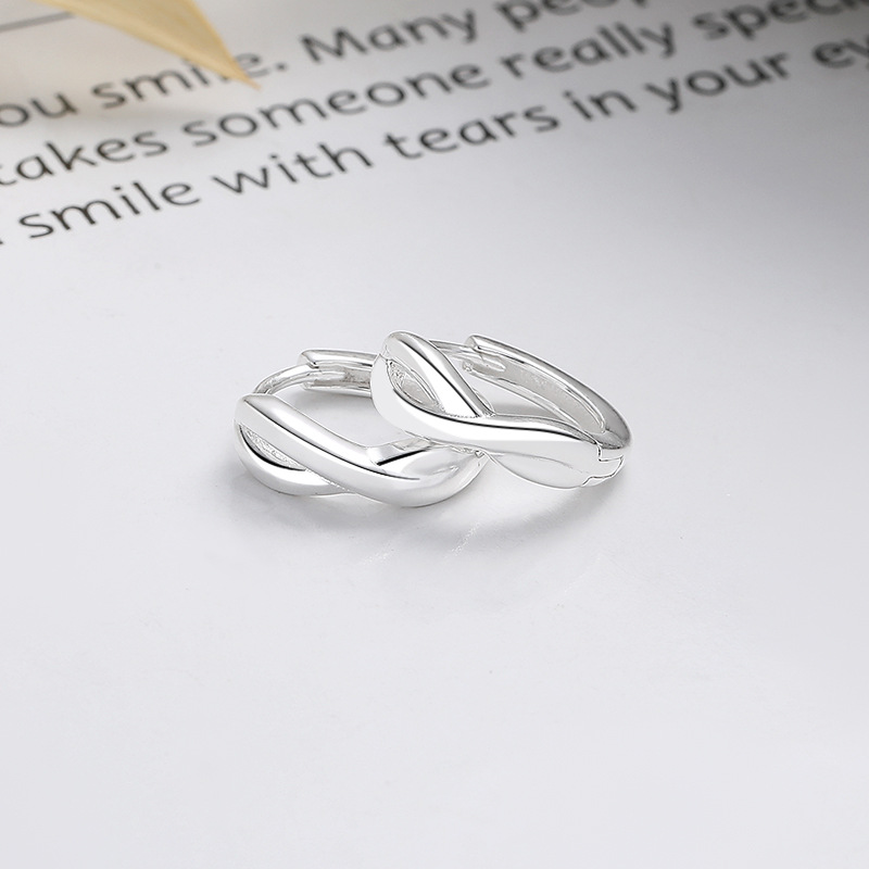Chao Sheng s925 sterling silver minimalist style geometric twist cross ear buckle fashion commuter Korean style ins cold style earrings
