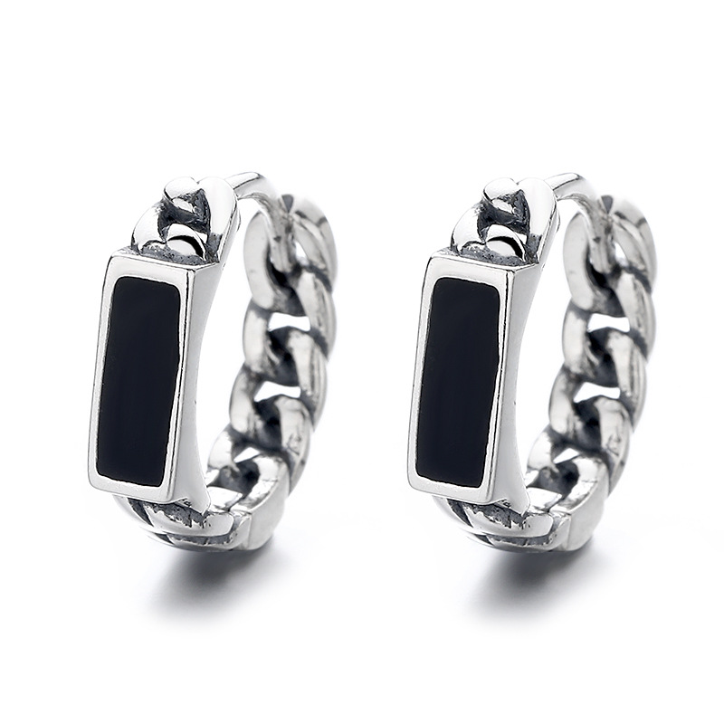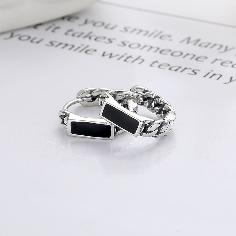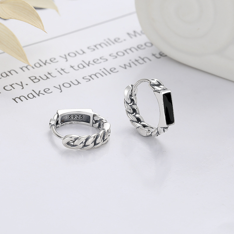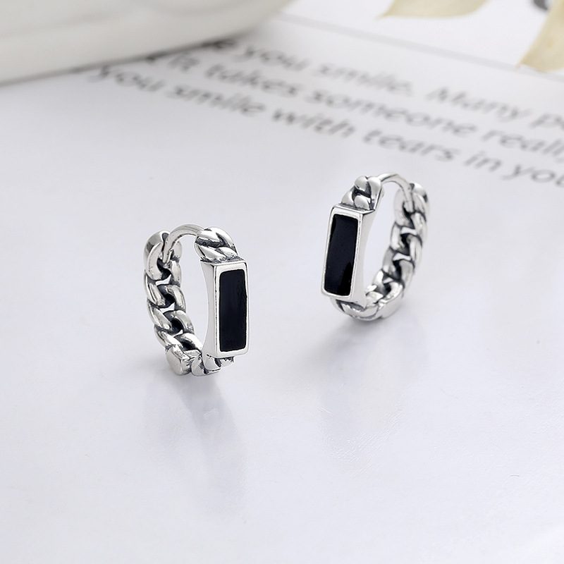 Chaosheng s925 sterling silver hemp pattern black epoxy ear buckle personality trendy neutral style boyfriend style all-match earrings