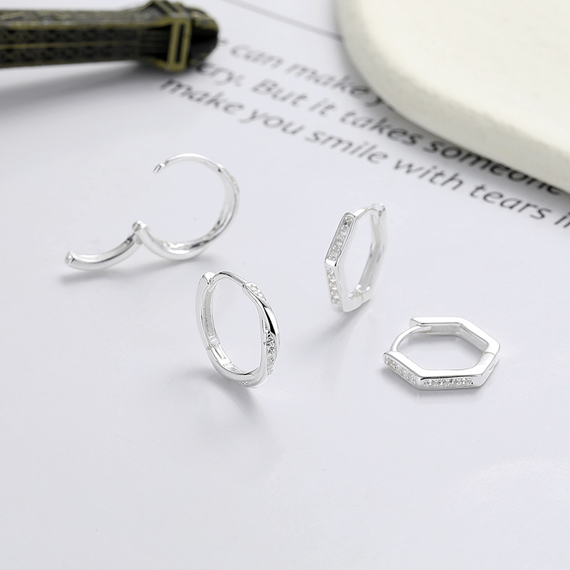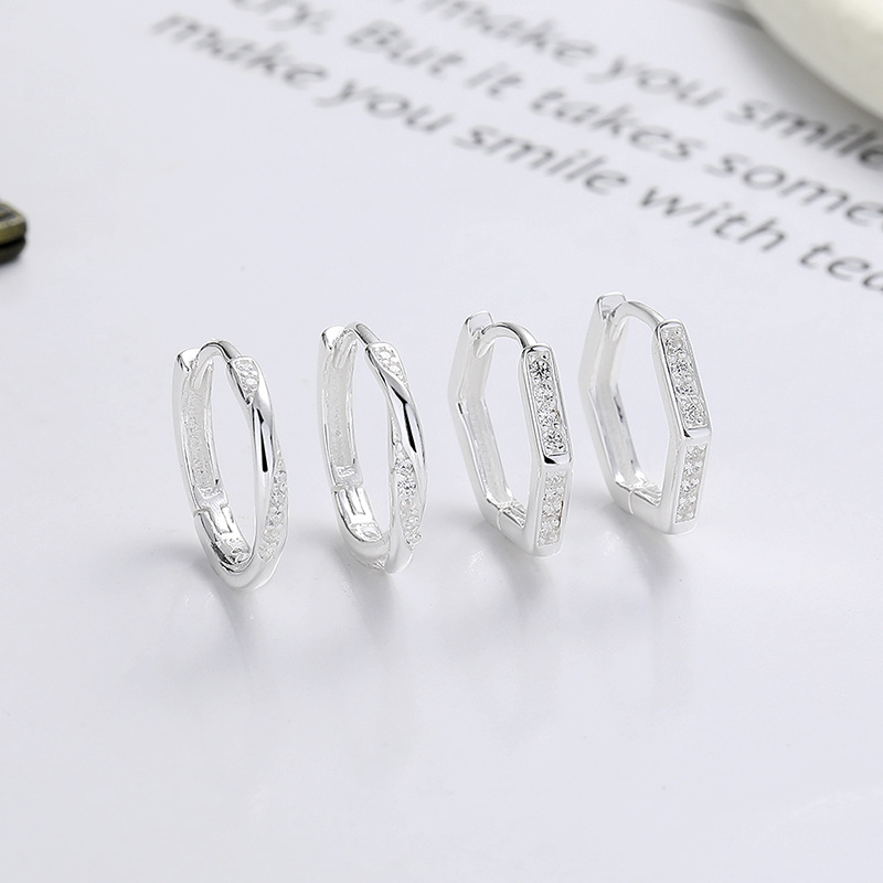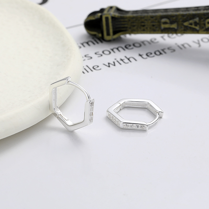 Chaosheng s925 sterling silver simple inlaid irregular geometric ear buckle Korean style exquisite small versatile earrings for women