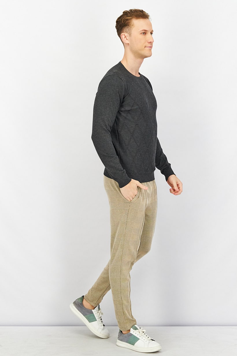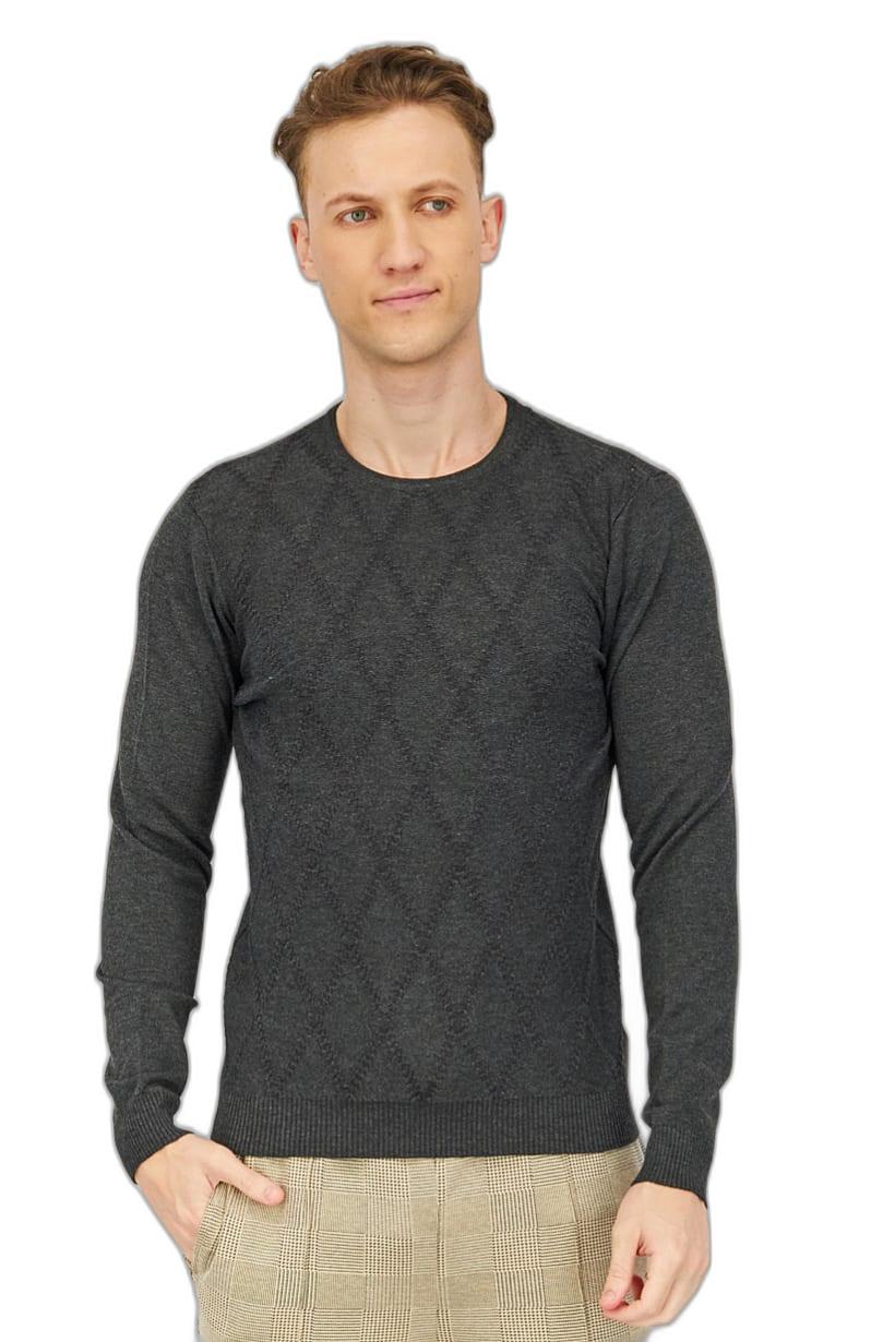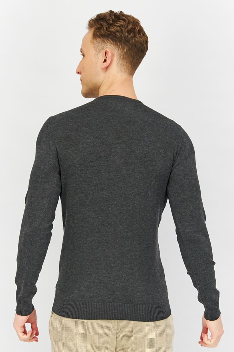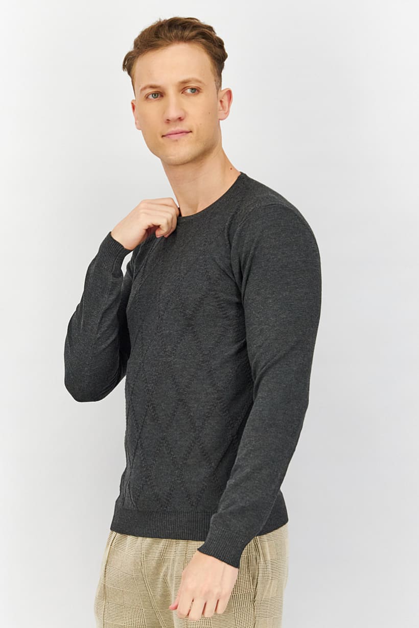 Charcoal Grey Textured Men’s Crew Neck Sweater with Long Sleeves.