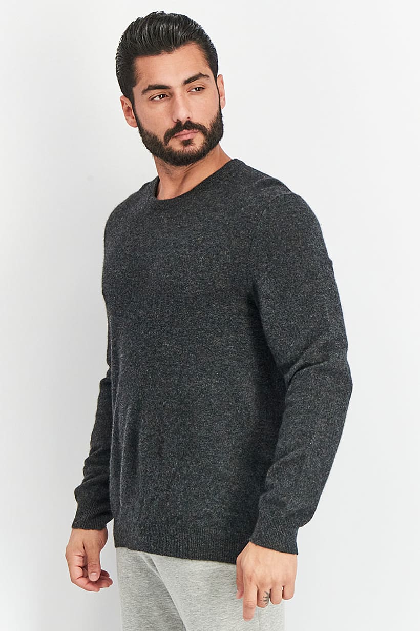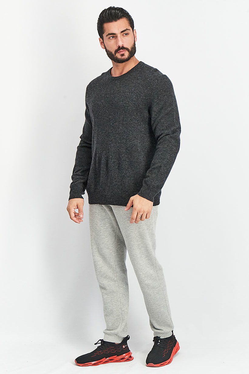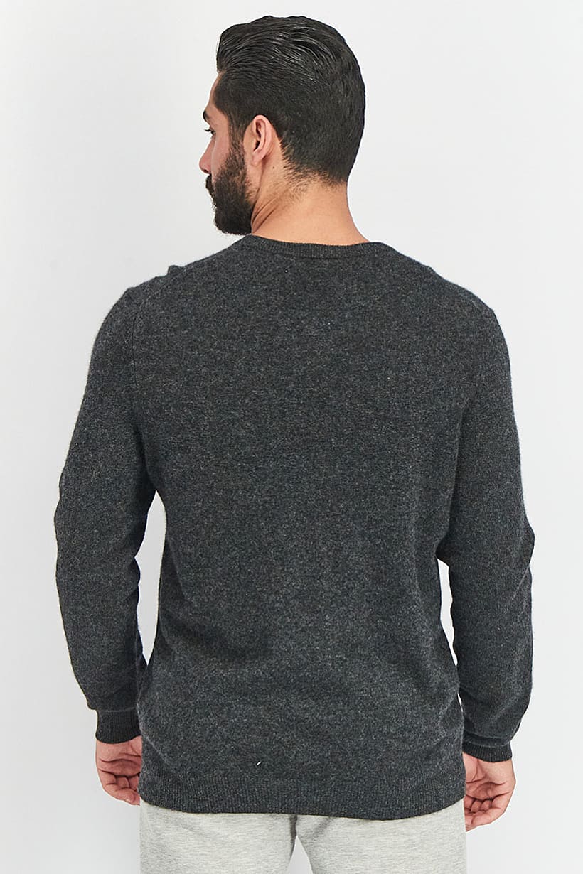 Charcoal Men’s Knit Sweater with Long Sleeves and Crew Neck.