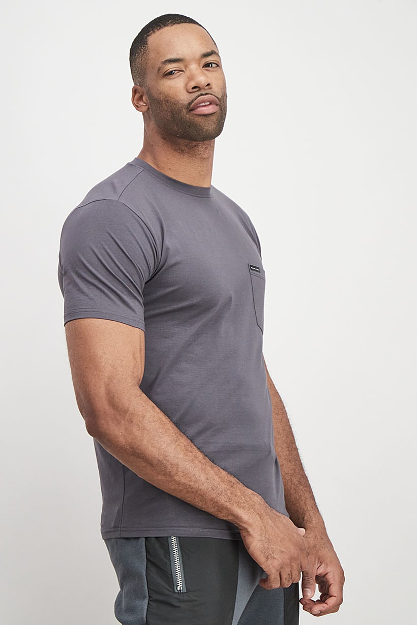 Charcoal Men’s Short Sleeve Training T-shirt for Sportswear Fitness.