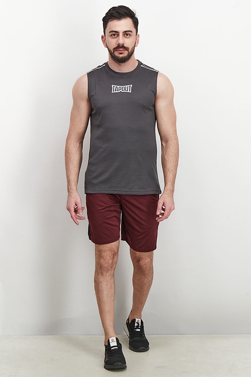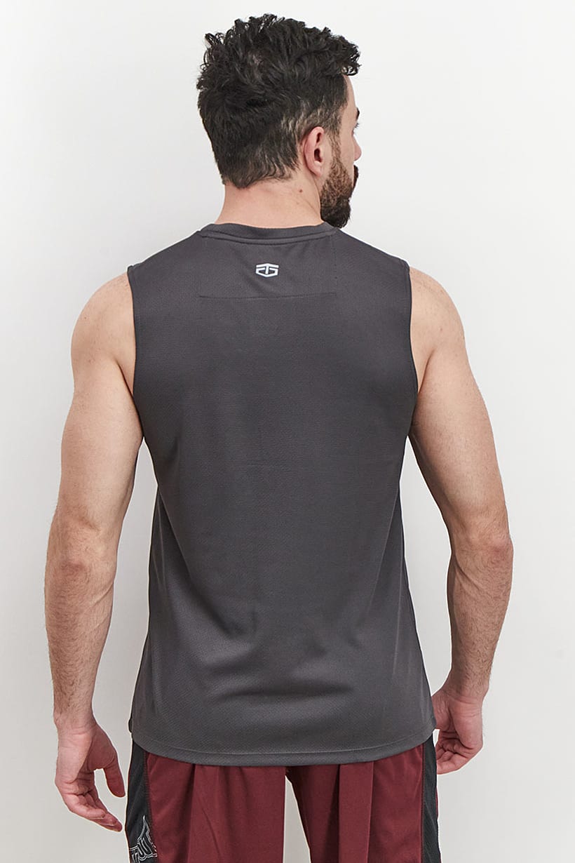 Charcoal Men’s Sleeveless Tank Top with Brand Logo on Crew Neck