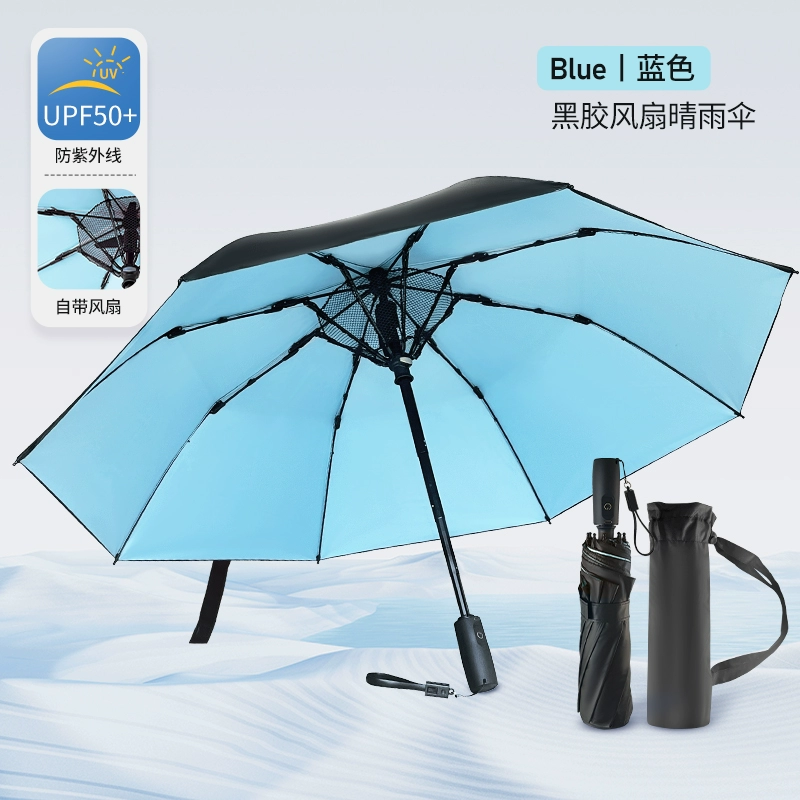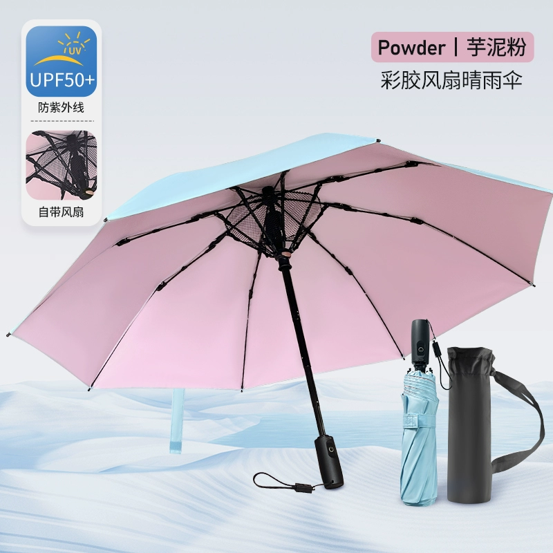 Charging foldable and portable sun protection umbrella with fan
