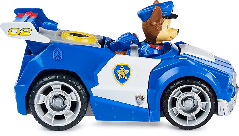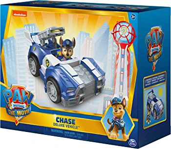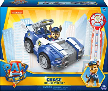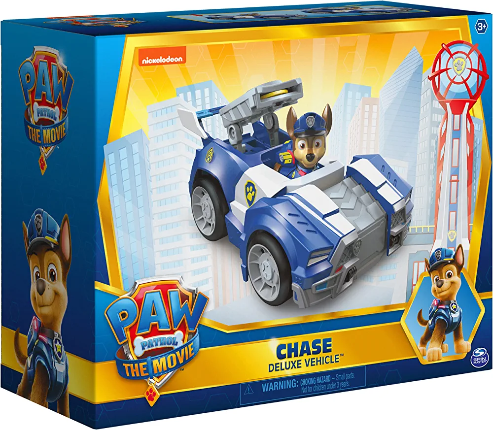 Chase’s Deluxe Movie Transforming Toy Car with Collectible Action Figure from Paw Patrol, suitable for kids aged 3 and above.
