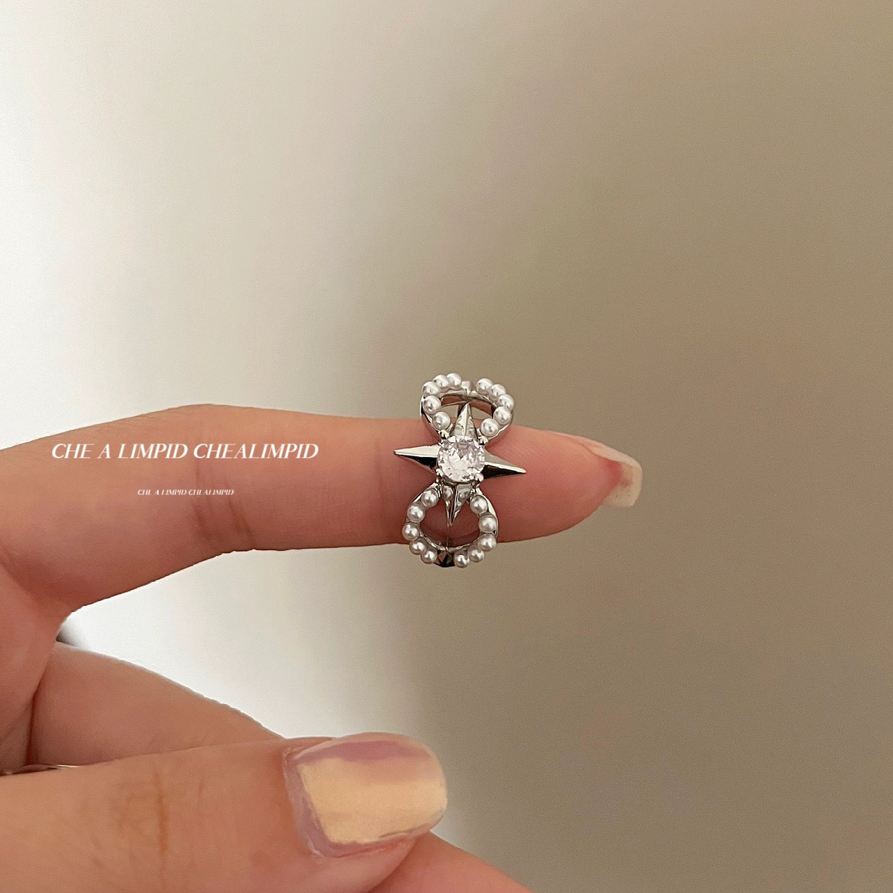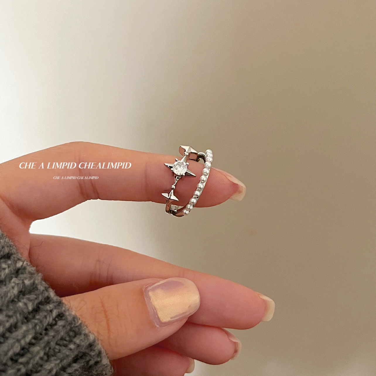 | nameOriginal | CHEALIMPID/starburst pearl stacked flash diamond original niche design open ring |
