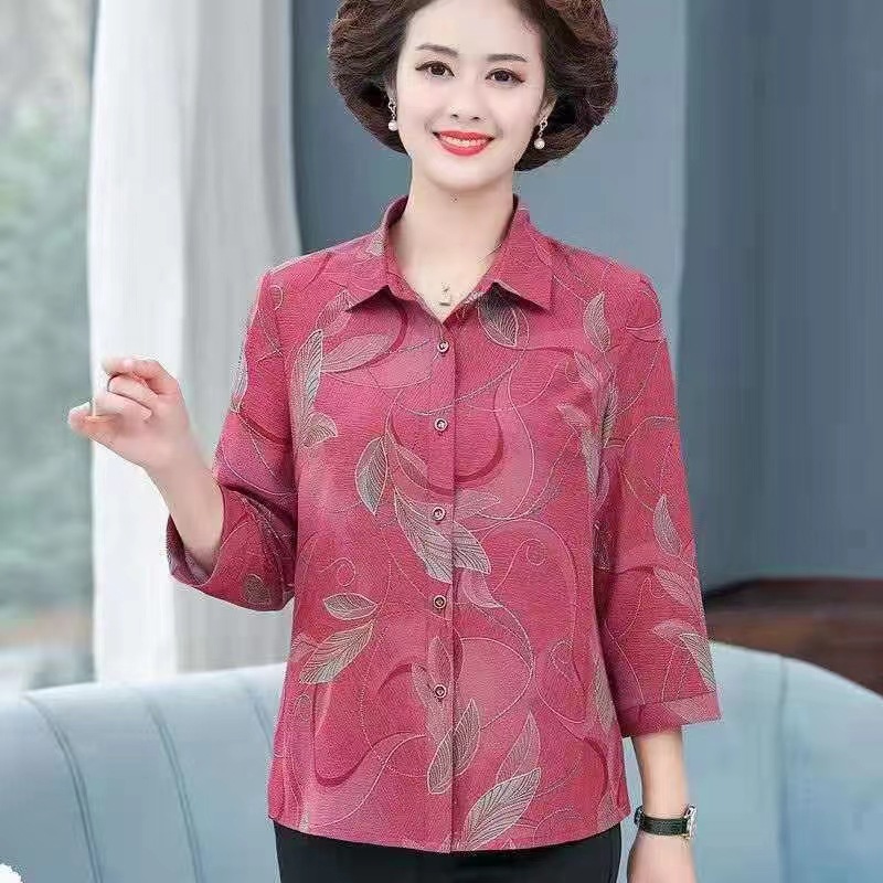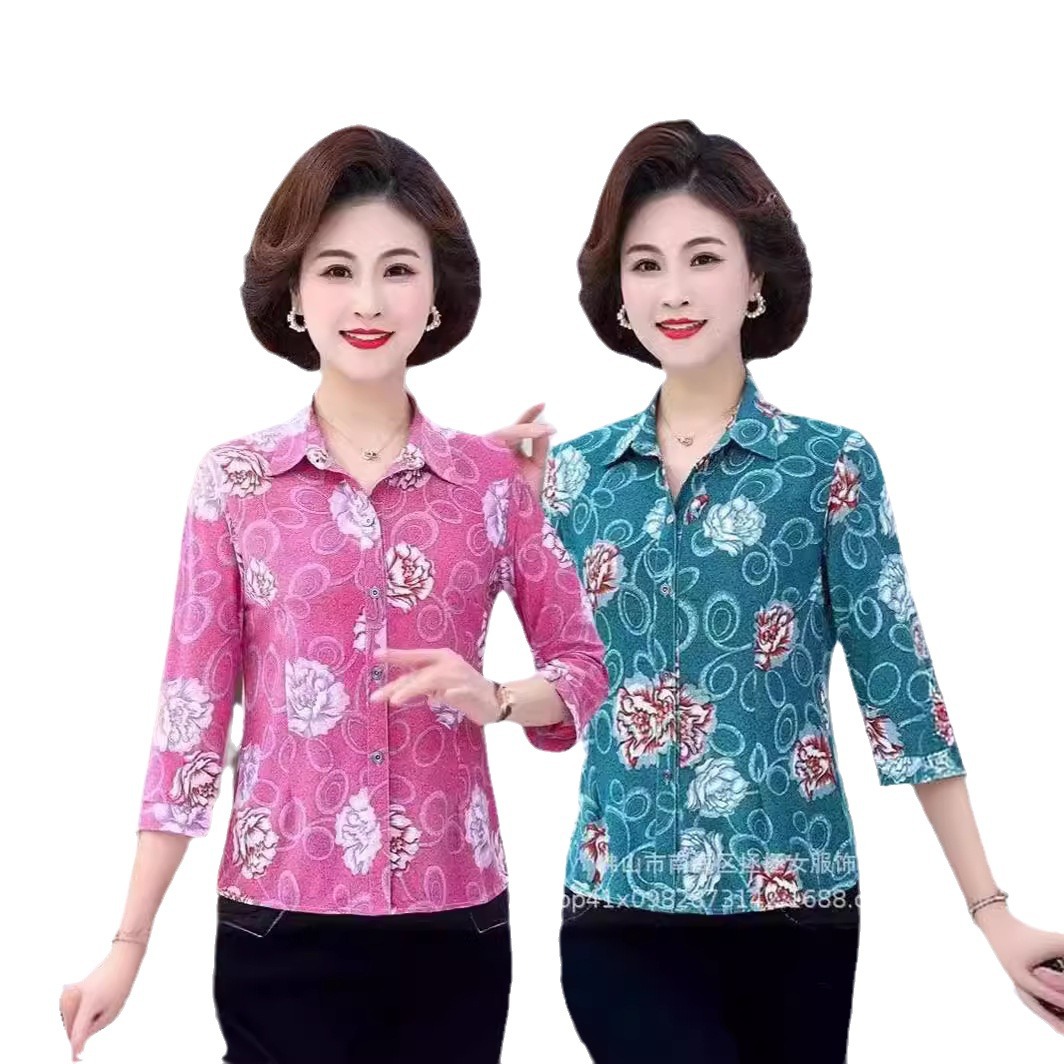 | nameOriginal | Cheap rural market stall supply summer new middle-aged and elderly women's mother button lapel long sleeve t-shirt |