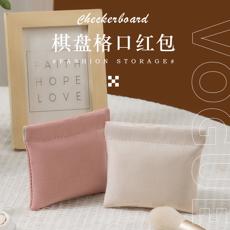 | nameOriginal | Checkerboard Red Envelope Mini Makeup Bag Women's Portable Lipstick Bag Makeup Bag Cosmetics Carry-on Storage Bag Small |