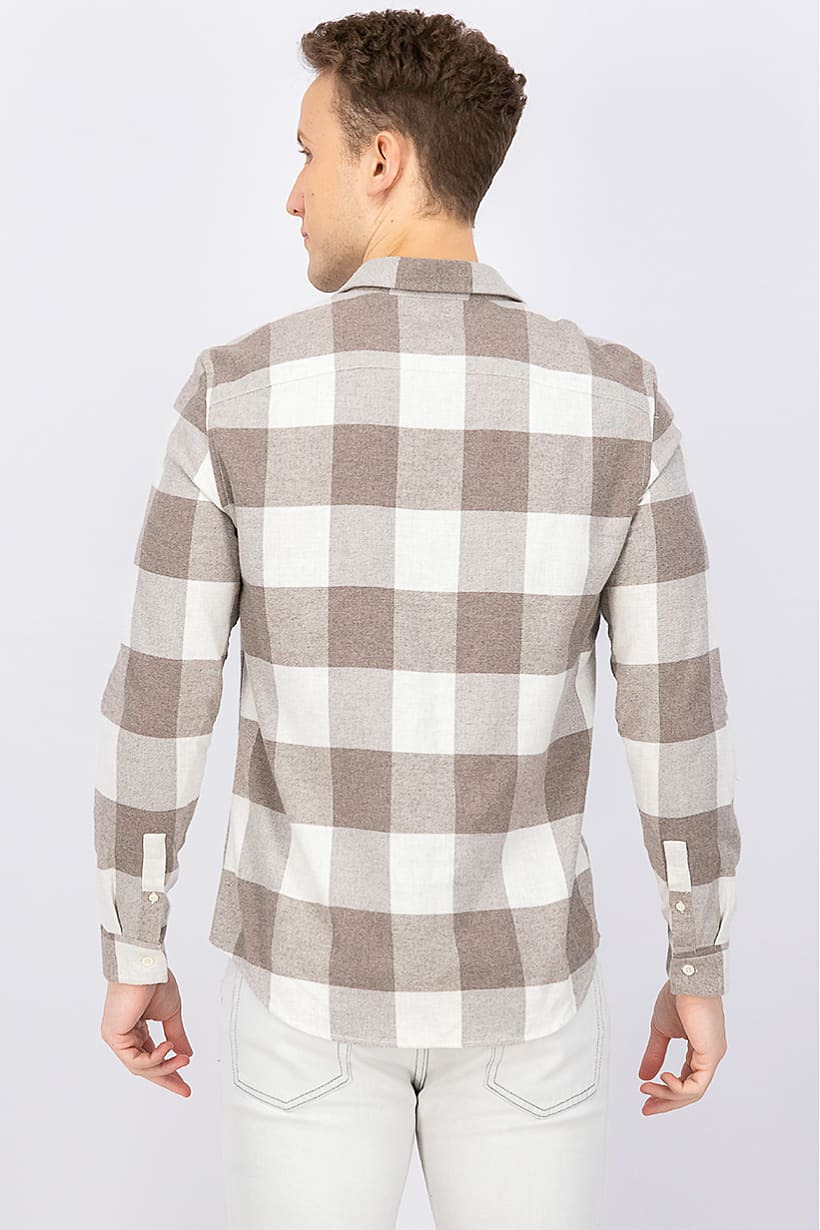 | descriptionOriginal | Care : Machine washable, Fit : Regular fit, Size shown : International, Sleeve Length : Long Sleeve, Types of Hem : Straight hem, Types of Neckline & Collar : Spread collar , Disclaimer : Product color may slightly vary due to photographic lighting sources or your monitor settings., Fabrics : 100% Cotton, Occasion : Casual, Pattern & Print : Checkered, Types of Closures : Button, Color Family : Brown, |