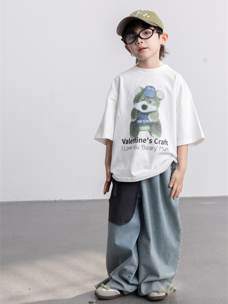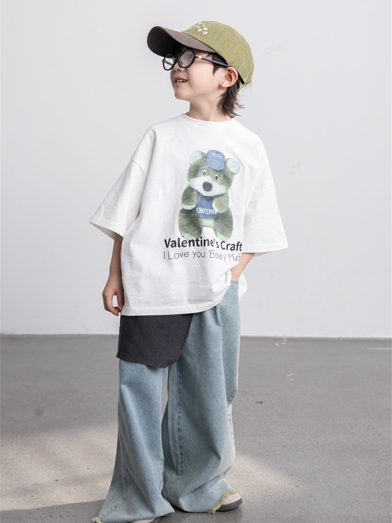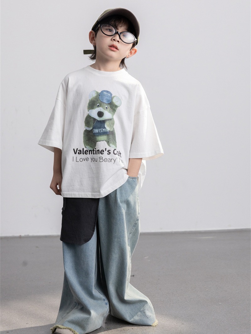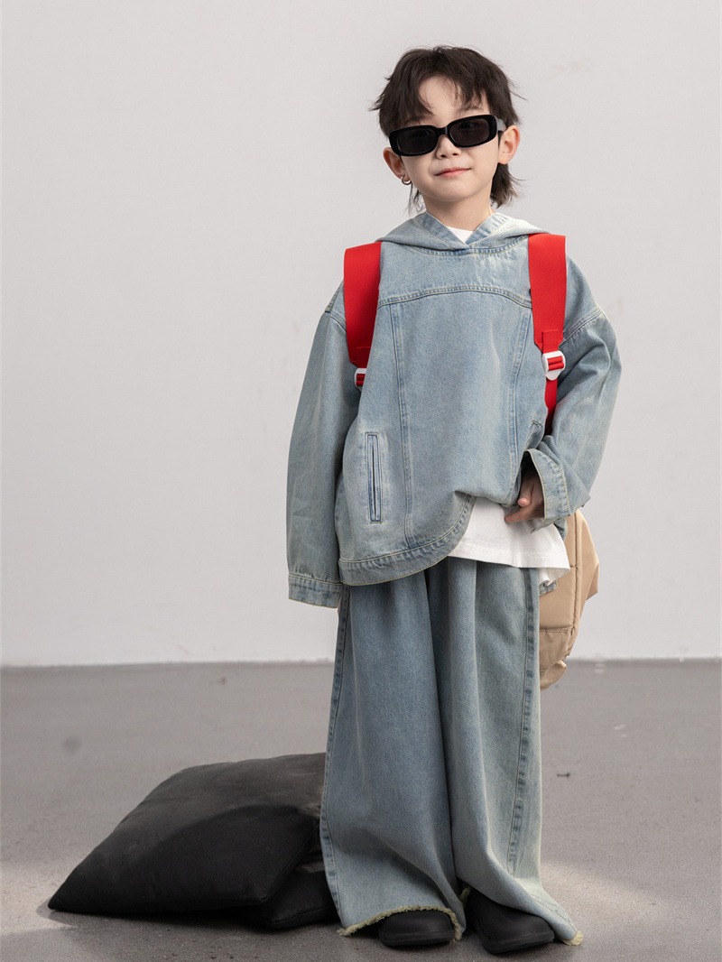 | nameOriginal | Cheese and meow Korean style 2024 New Spring boys' retro ankle-cut frayed jeans fashionable children's trousers |