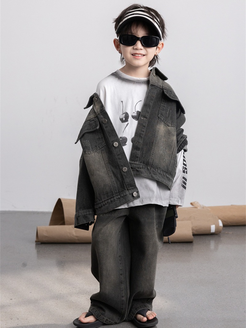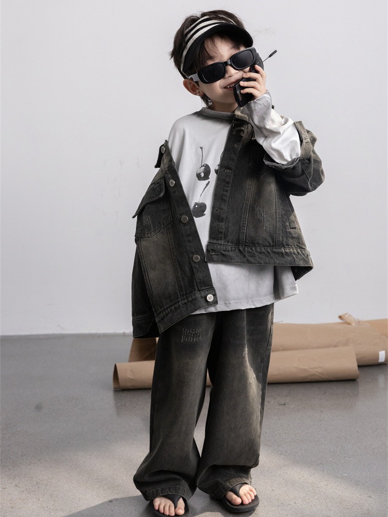 | nameOriginal | Cheese and meow Korean style 2024 New Spring boys' retro frosted Denim coat children's baby coat |