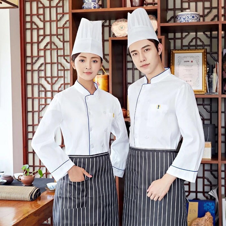 | nameOriginal | Chef's long sleeve white uniform overalls purple red edge Blue edge 2023 spring and summer new printed embroidered word a generation of hair |