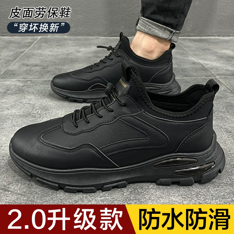 Chef's shoes summer non-slip waterproof and oil-proof labor protection work shoes kitchen soft sole black shoes casual leather shoes for men
