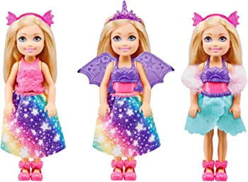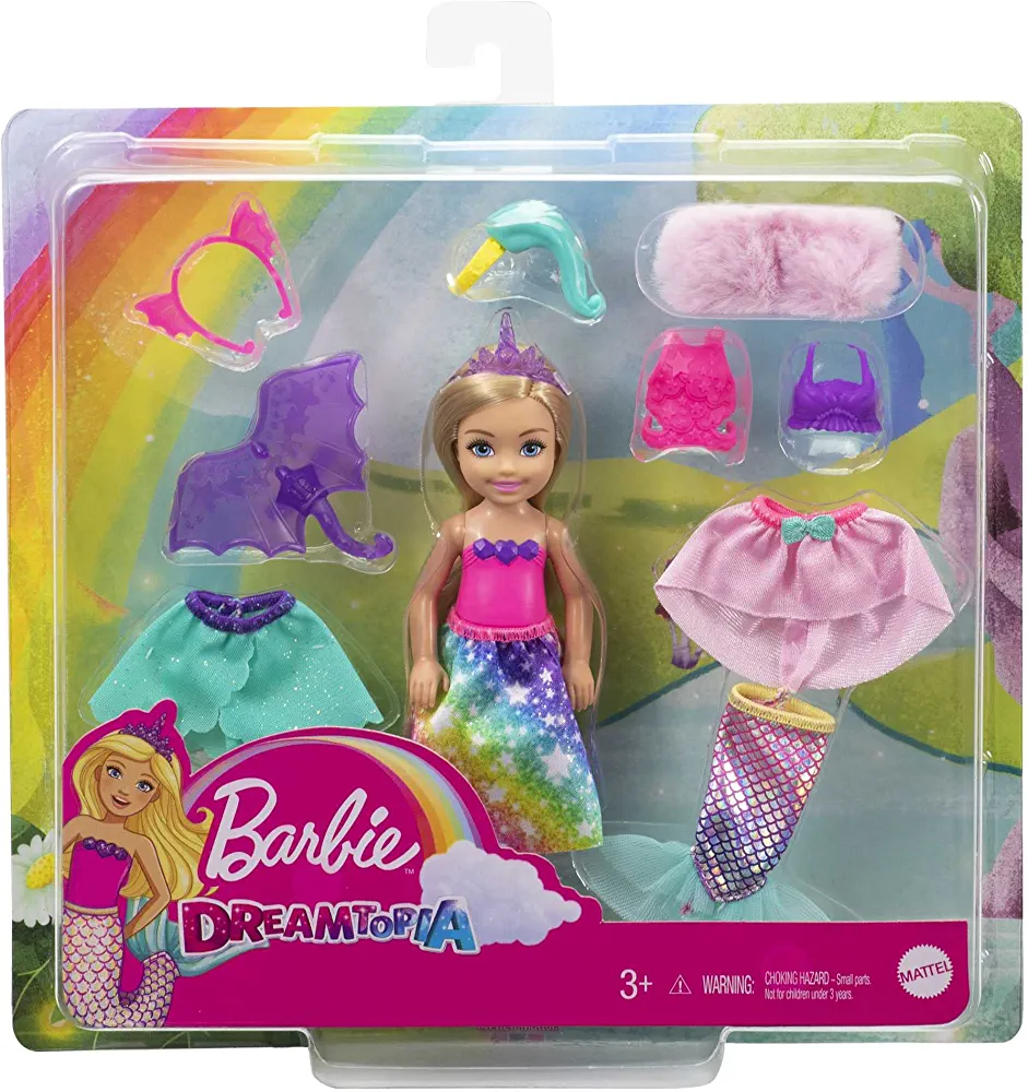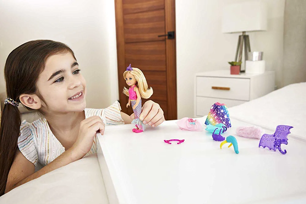 With 12 fantastical fashion pieces, imaginations can dress this Barbie Dreamtopia Chelsea doll up as a princess, unicorn, mermaid or dragon — or mix and match to create their own fairytale character!