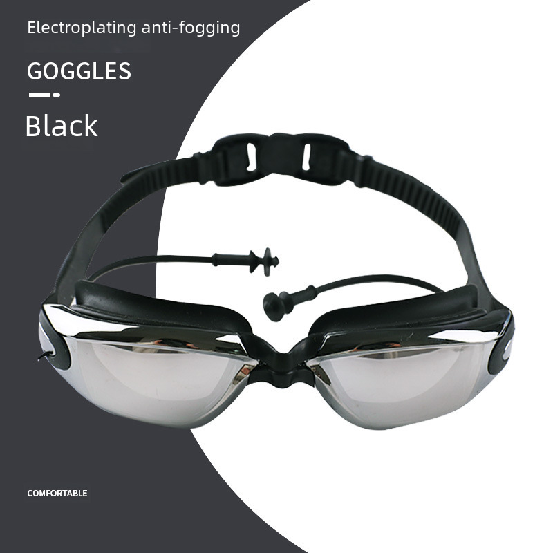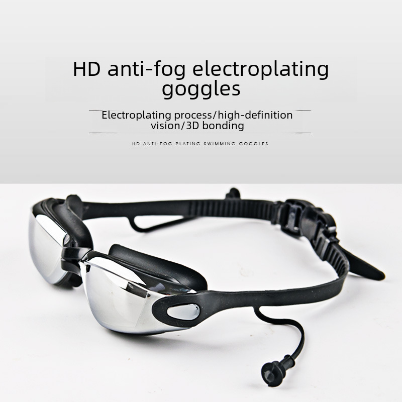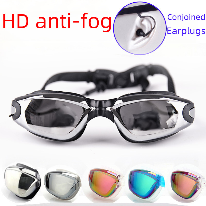 Cheng Xiang Zhengpin electroplated anti-fog swimming goggles conjoined earplugs for men and women flat light HD waterproof swimming goggles spot batch