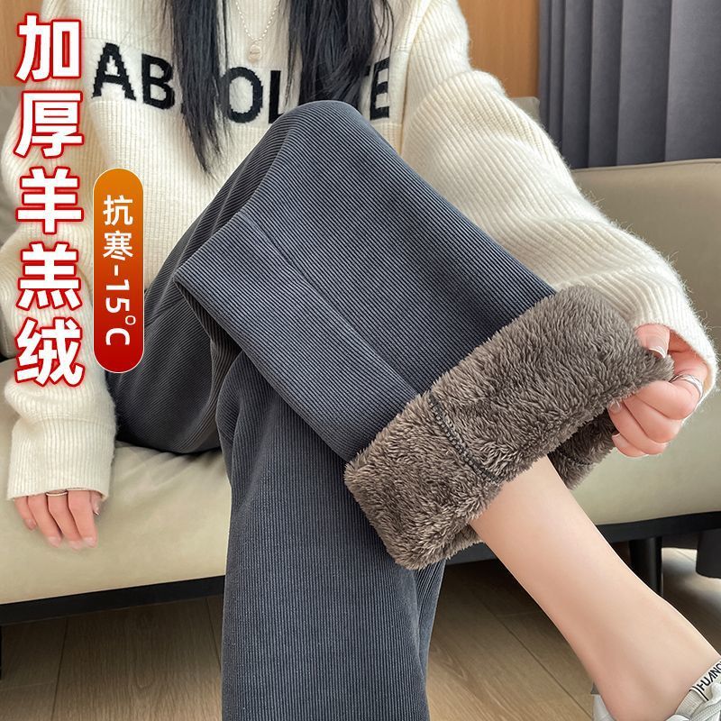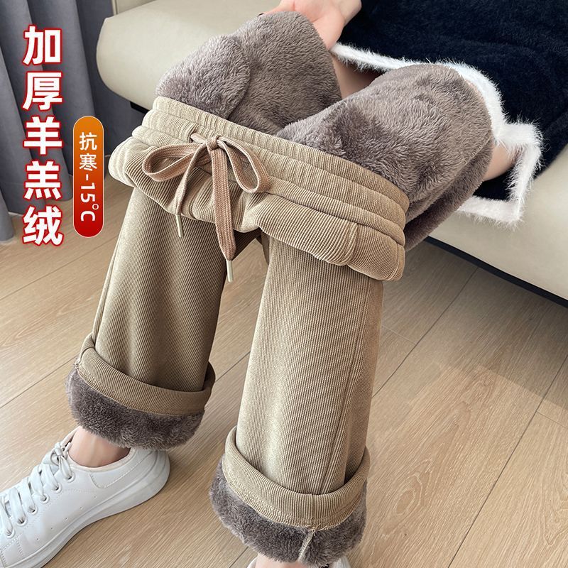 | nameOriginal | Chenille Pants Long fleece-lined Wide Leg Pants Women's Autumn and Winter High Waist Sweatpants Narrow Straight Lamb Fleece Sports Pants |