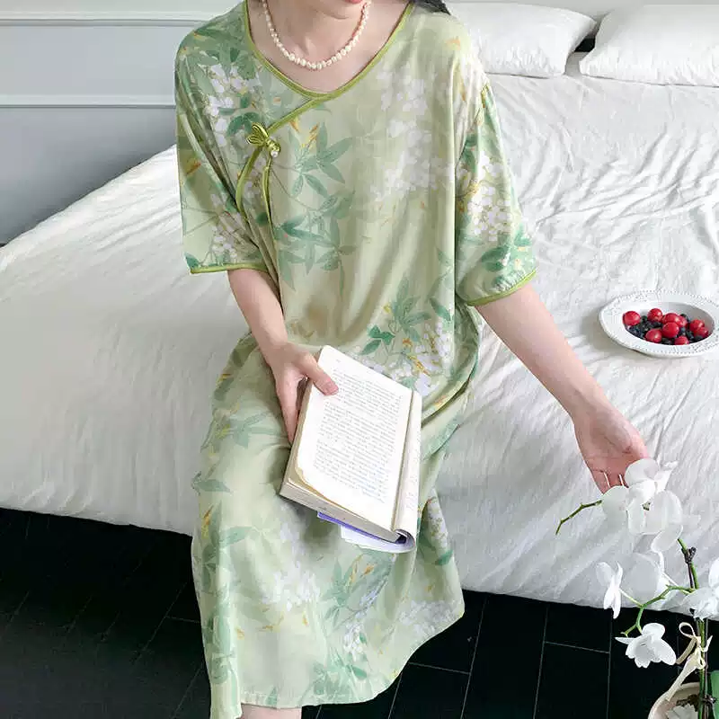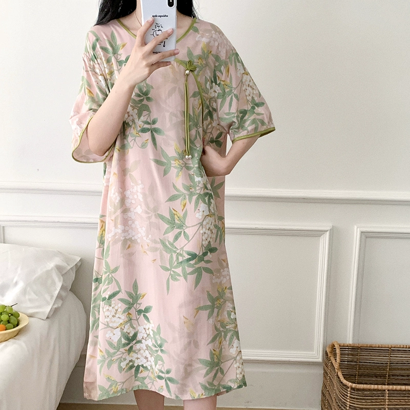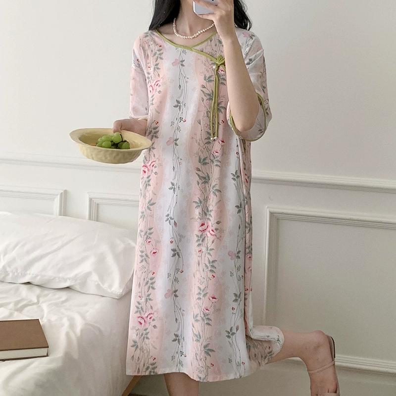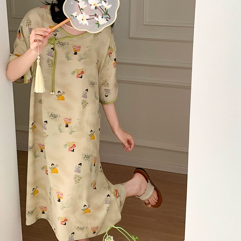 Cheongsam collar plate button retro everyday cotton silk dress