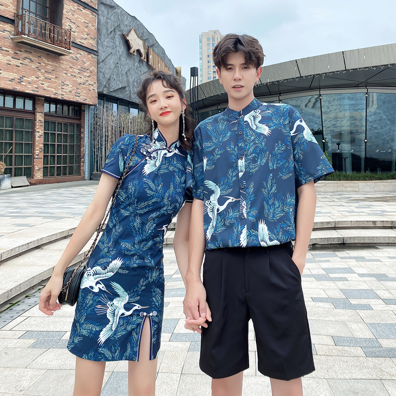 | nameOriginal | Cheongsam Couple's Summer Dress Shirt Men's Suit Popular Chinese Style Crane Flower Shirt Short Sleeve Split Dress |