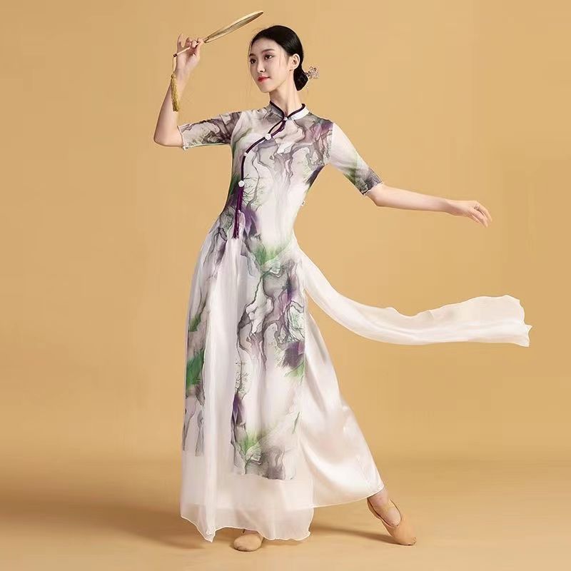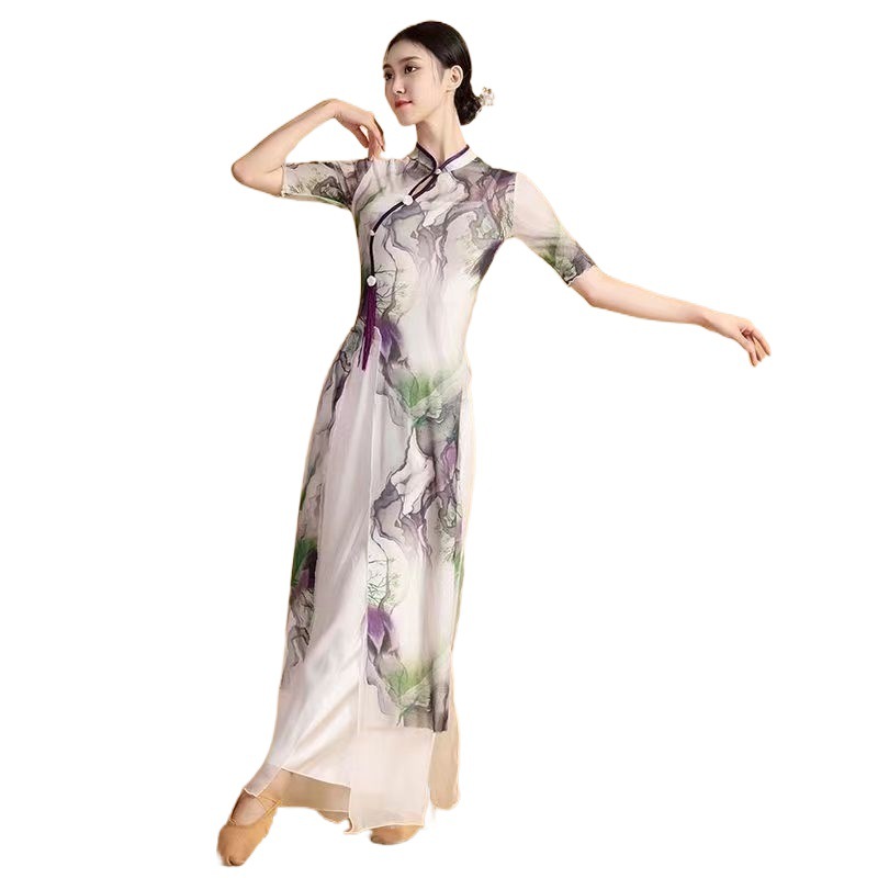 Cheongsam Dance Clothing Women's Stretch Chinese Dance Classical Dance Practice Clothing Body-shaping Elegant Costume