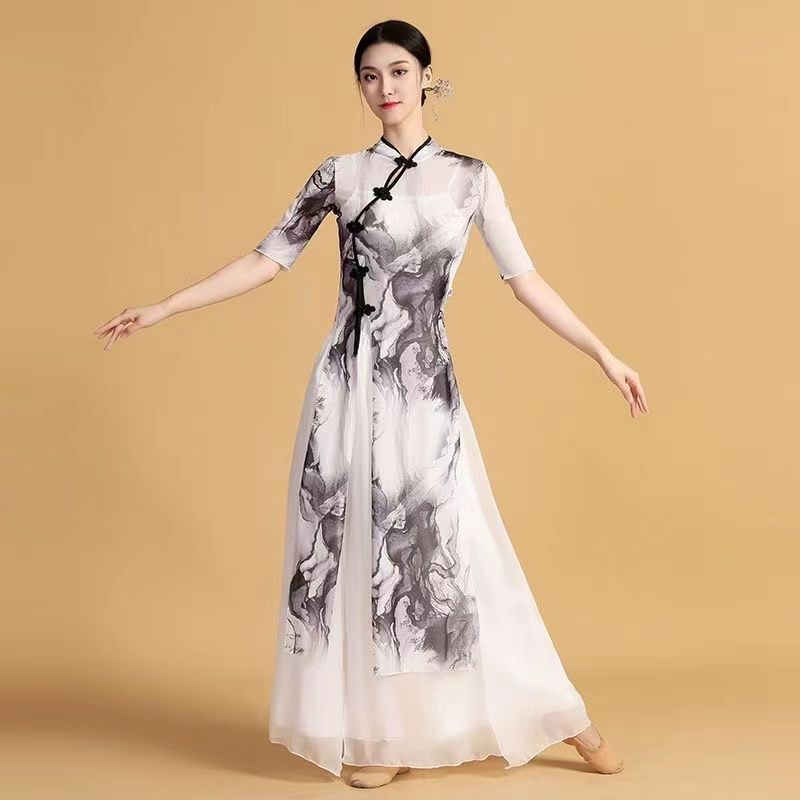 Cheongsam Dance Clothing Women’s Stretch Chinese Dance Classical Dance Practice Clothing Body-shaping Elegant Costume