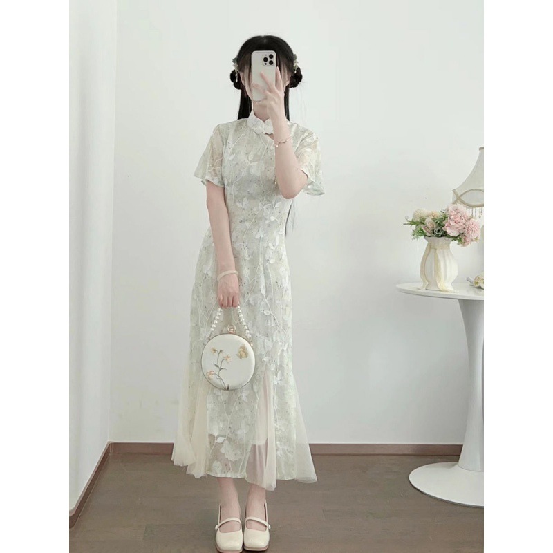 | nameOriginal | Cheongsam fishtail retro Republic of China style new Chinese style improved green fresh tea clothing young girl Summer |