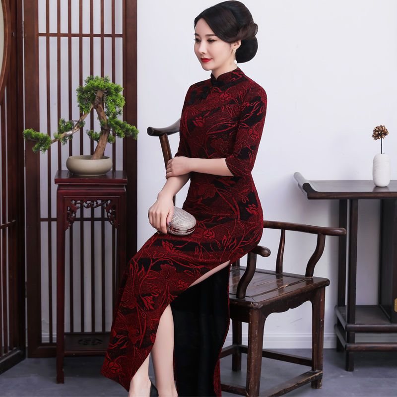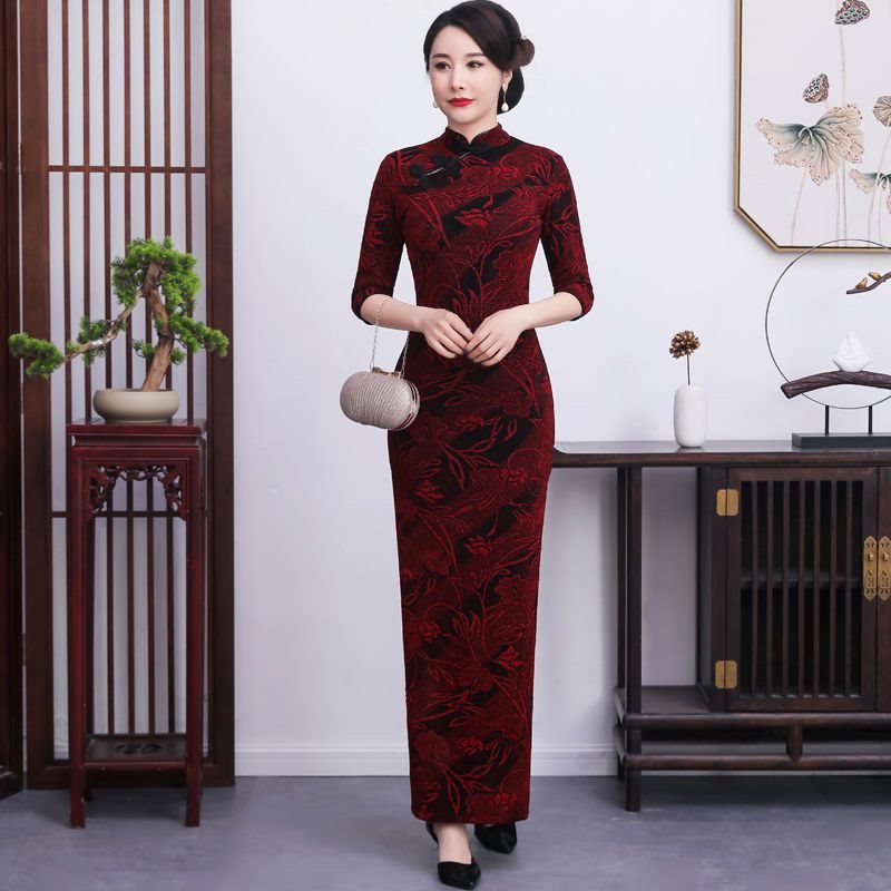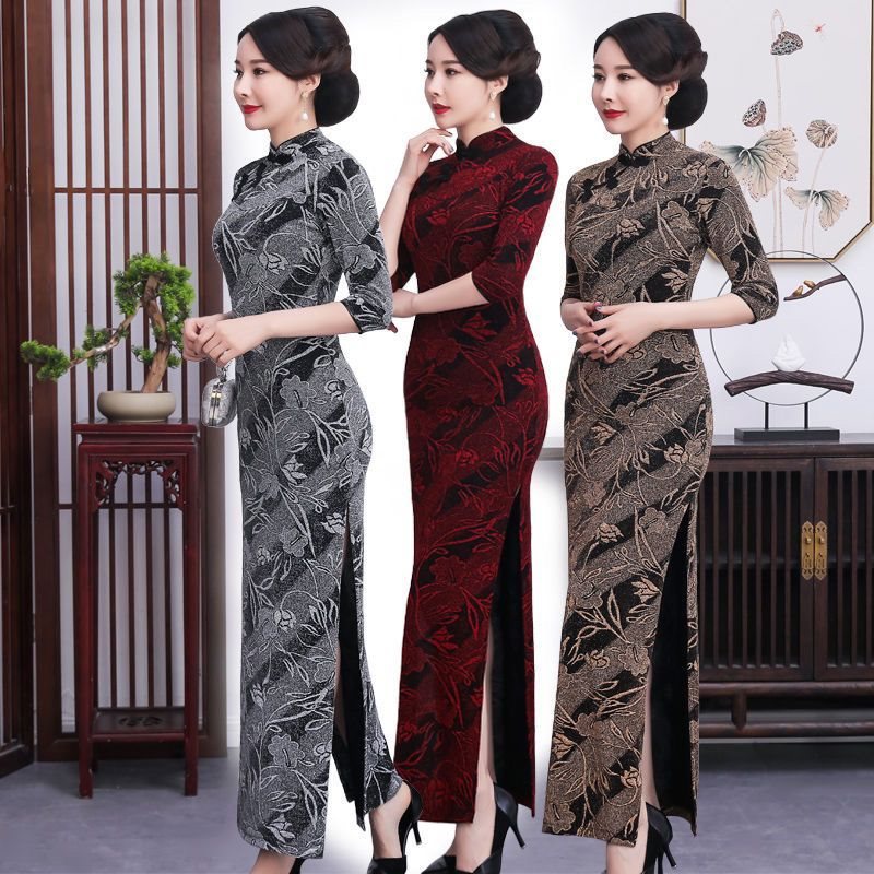 | nameOriginal | Cheongsam Women's Elegant Long Banquet plus size Slim-fit Gown Bright Silk Jacquard Slant New Spring and Autumn Performance Middle-aged and Old People |