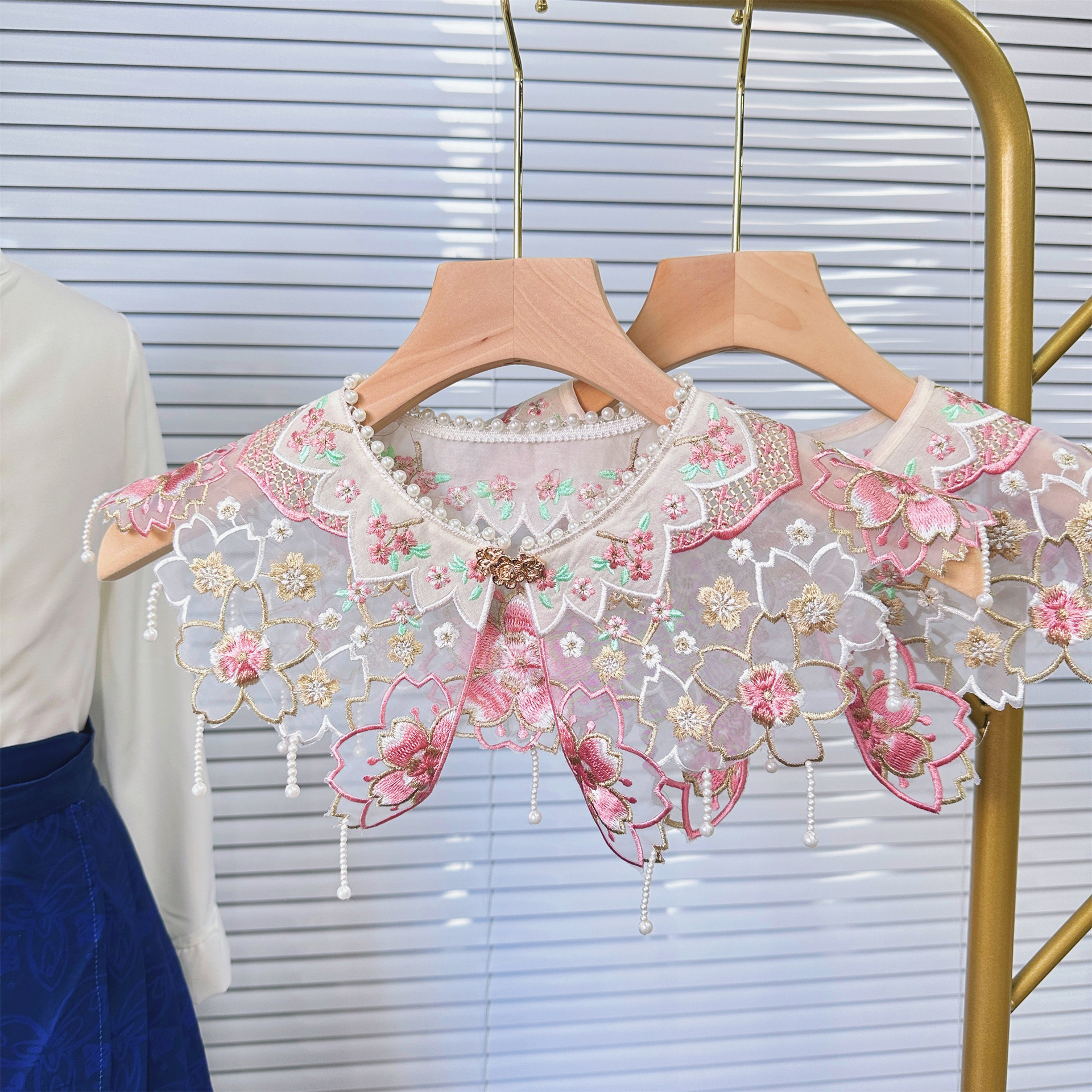 | nameOriginal | Cherry blossom cloud shoulder ancient costume Hanfu embroidery piece yarn bottom embroidery accessories gold thread non-adhesive children's skirt children's adult style |