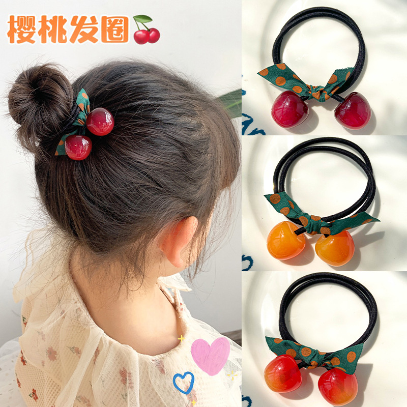 Cherry Bow Hair Loop Cute Internet Celebrity Rubber Band Hair Rope High Elastic Simple Children's Fruit Hair Accessories