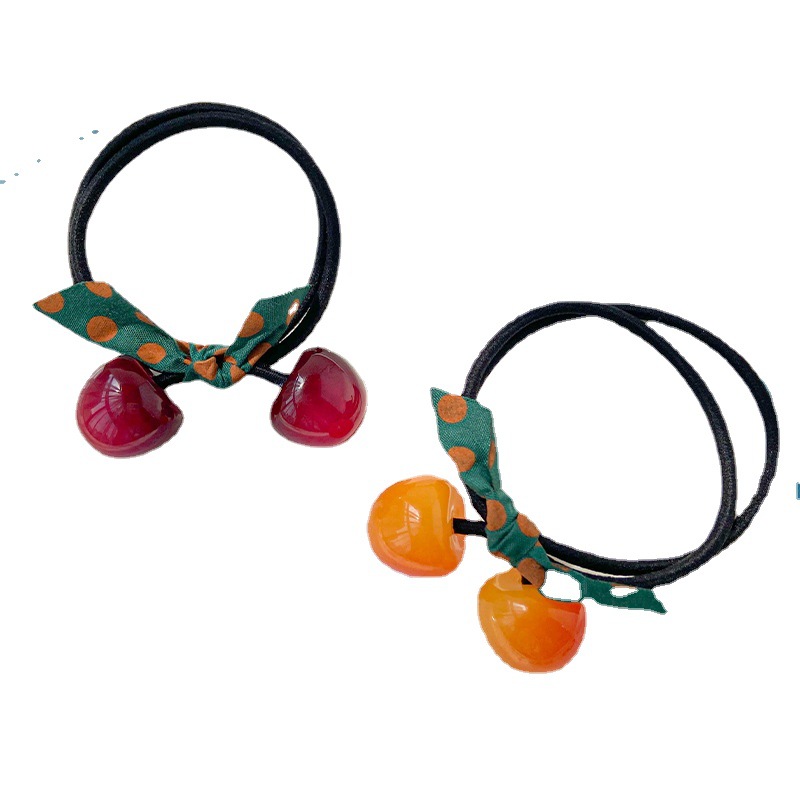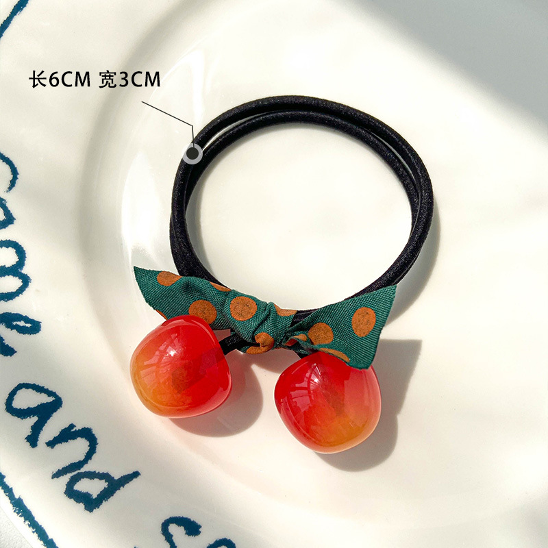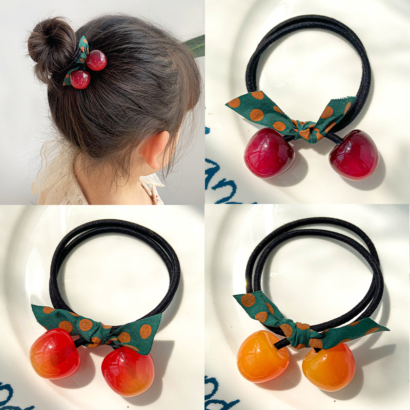 Cherry Bow Hair Loop Cute Internet Celebrity Rubber Band Hair Rope High Elastic Simple Children’s Fruit Hair Accessories