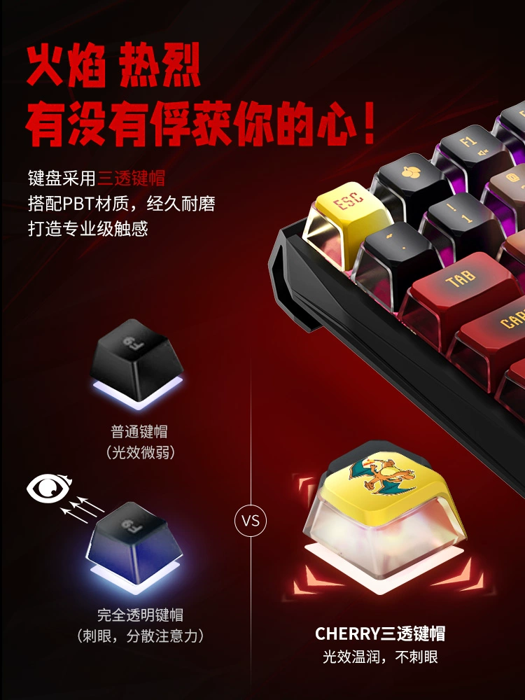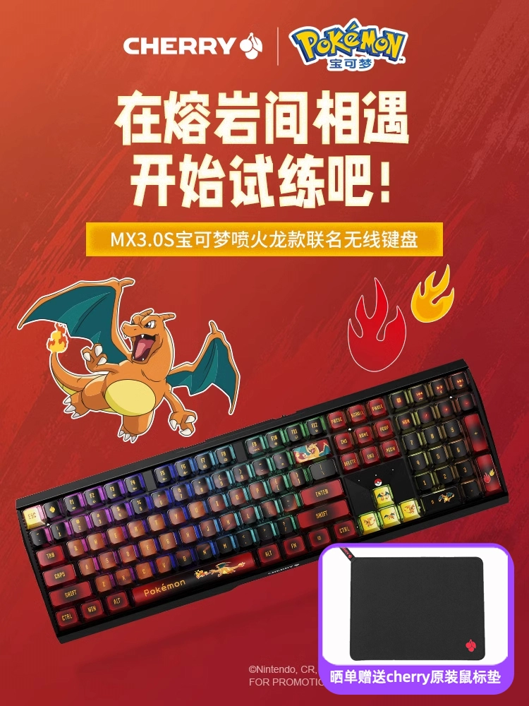 | nameOriginal | CHERRY Cherry MX3.0S Pokémon Charizard Wireless Gaming Esports Mechanical Keyboard Bluetooth Aluminum Tuotuo |