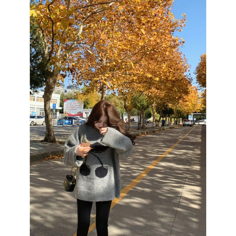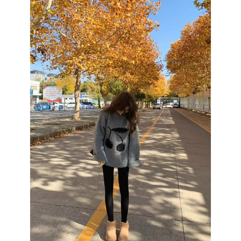 | nameOriginal | Cherry sweater women's lazy style thickened autumn and winter design loose pullover bottoming shark pants suit two-piece set |