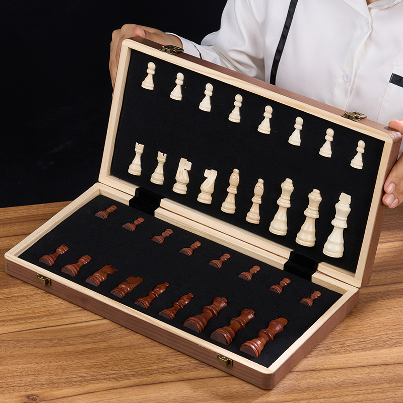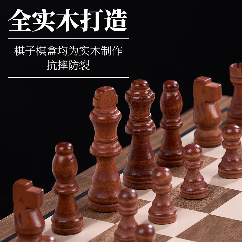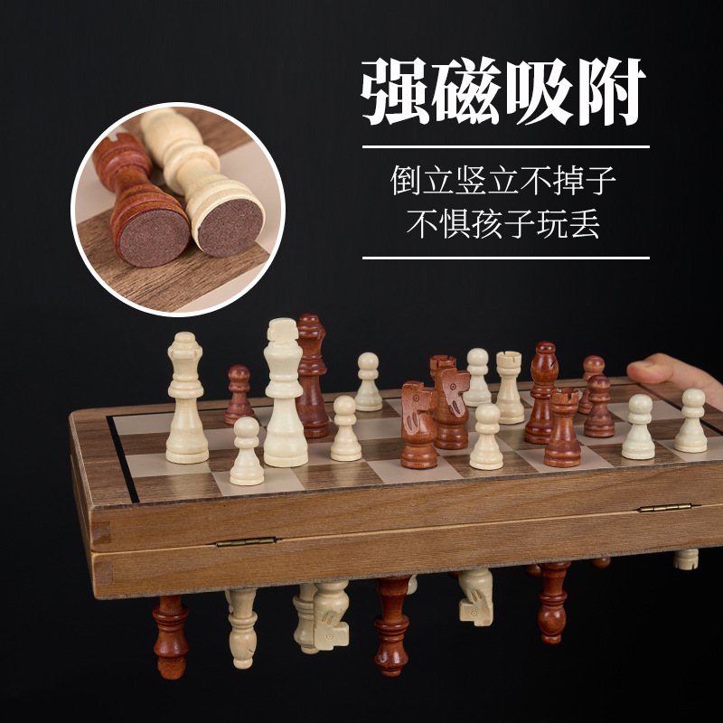 Chess with magnetic solid wood high-grade folding chessboard Western chess for children and students training competition