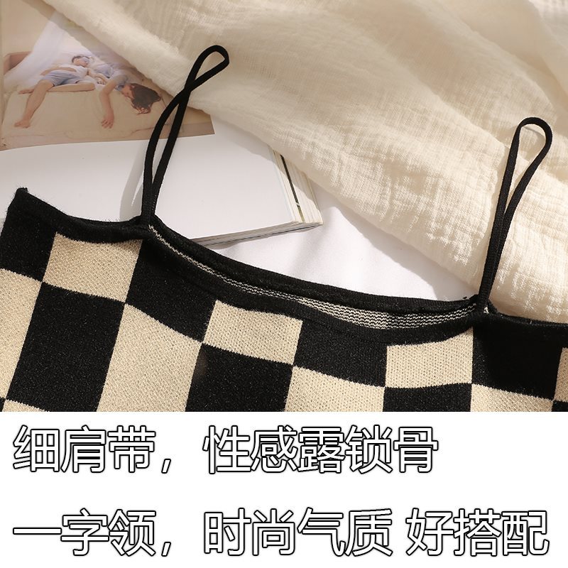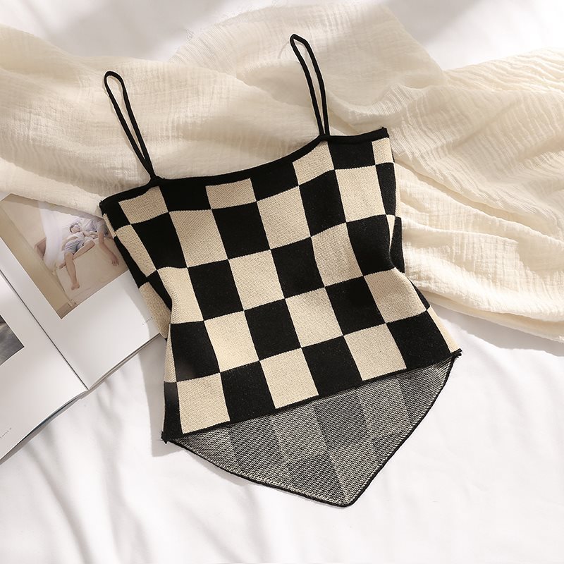 | nameOriginal | Chessboard Camisole Women's Inner Design Niche Chic Spice Girl Outer Wear Tube Top for Chubby Girls Knitted Top |