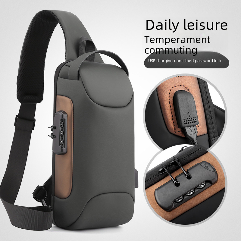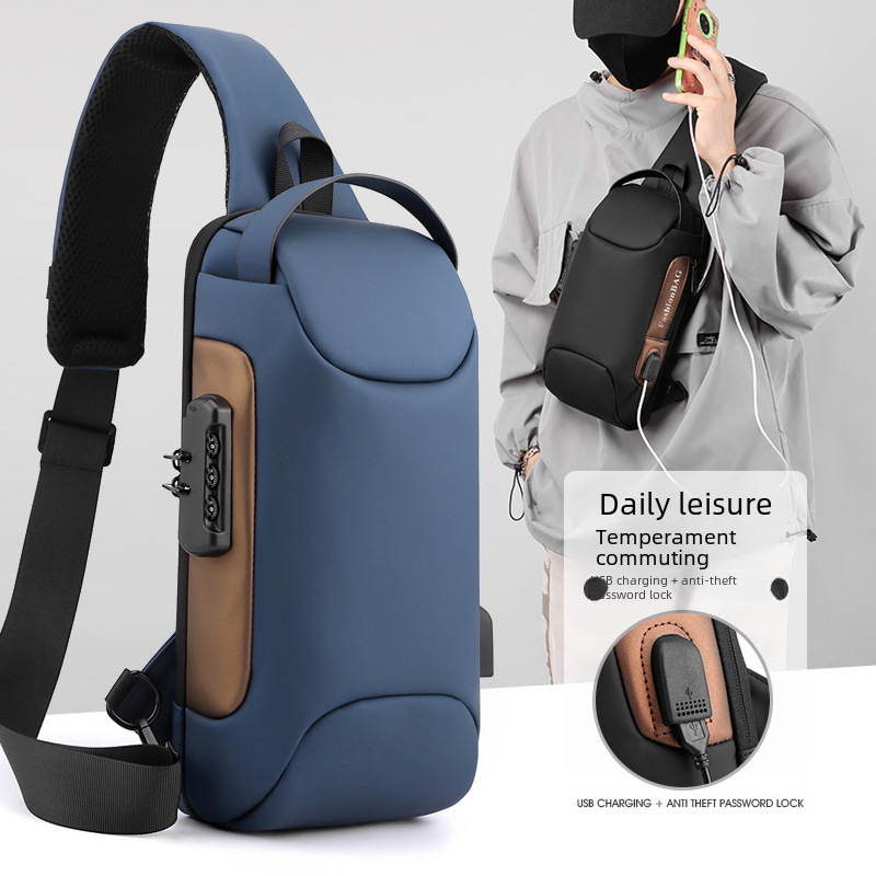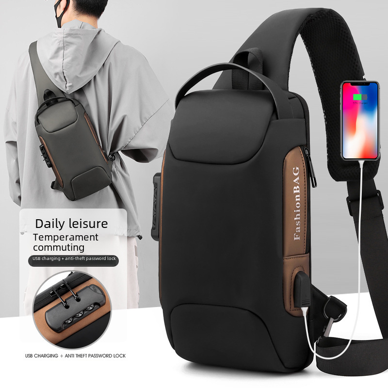 Chest Bag Men's Nylon Casual Crossbody Bag Shoulder Bag Men's Chest Bag usb Charging Sports Water Drop Bag for Men