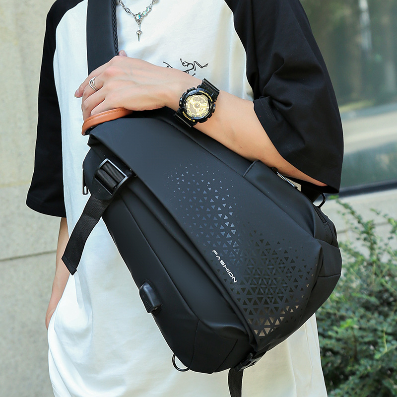 Chest Bag Men’s USB charging backpack badminton racket backpack splash-proof chest bag commuter backpack water backpack