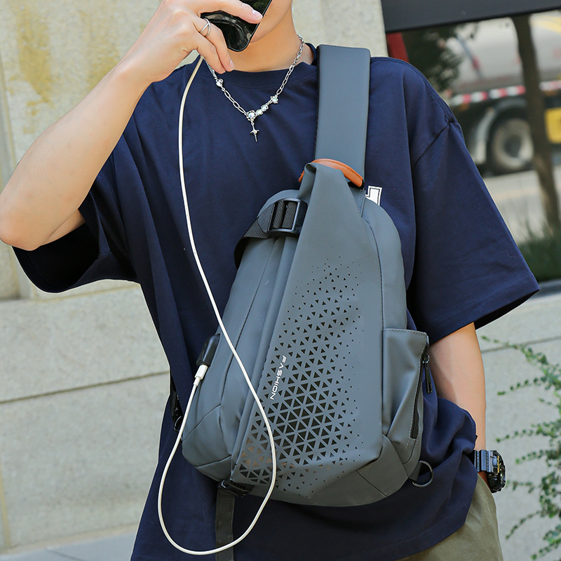 Chest Bag Men's USB charging backpack badminton racket backpack splash-proof chest bag commuter backpack water backpack